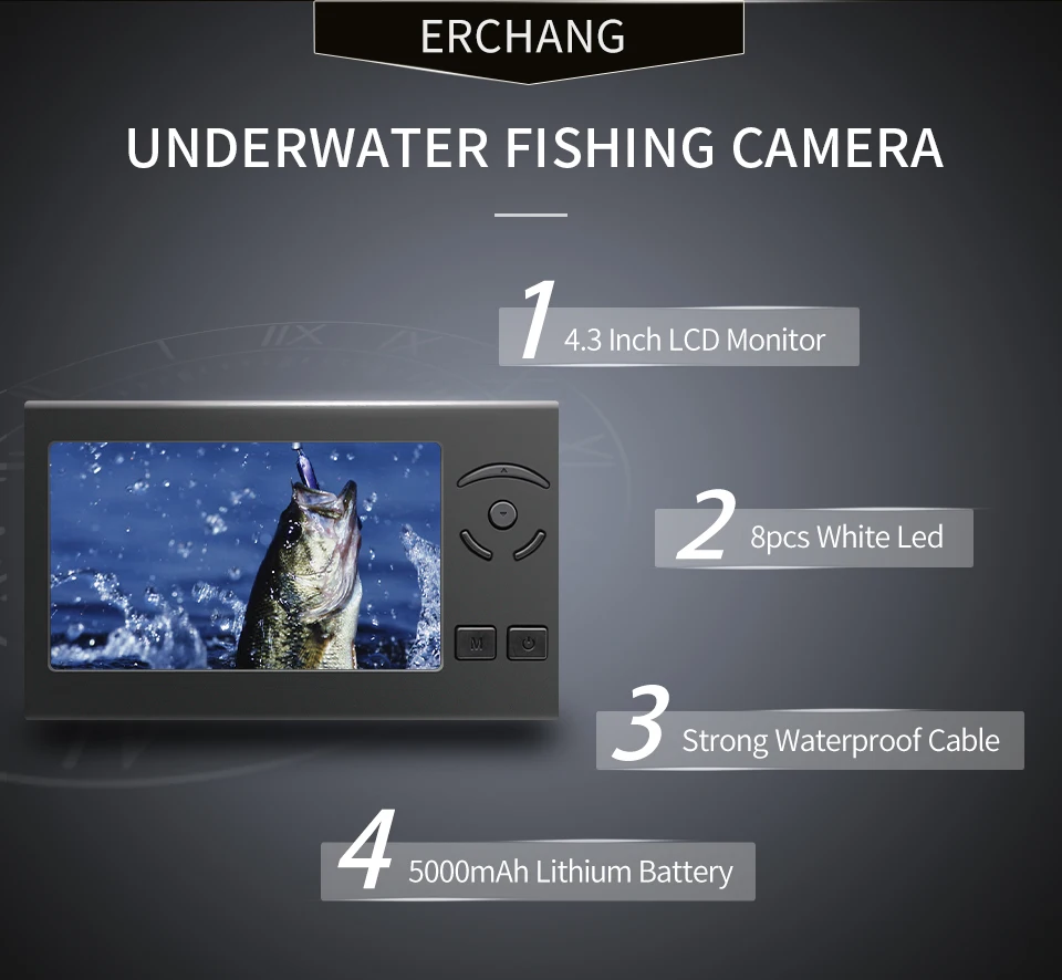 Erchang F430 Рыболокаторы 4,3 дюймов 1000TVL Рыболокаторы подводная рыбалка Камера 5000 мА/ч, 8 шт. белый светильник светодиодный видение Камера рыбы