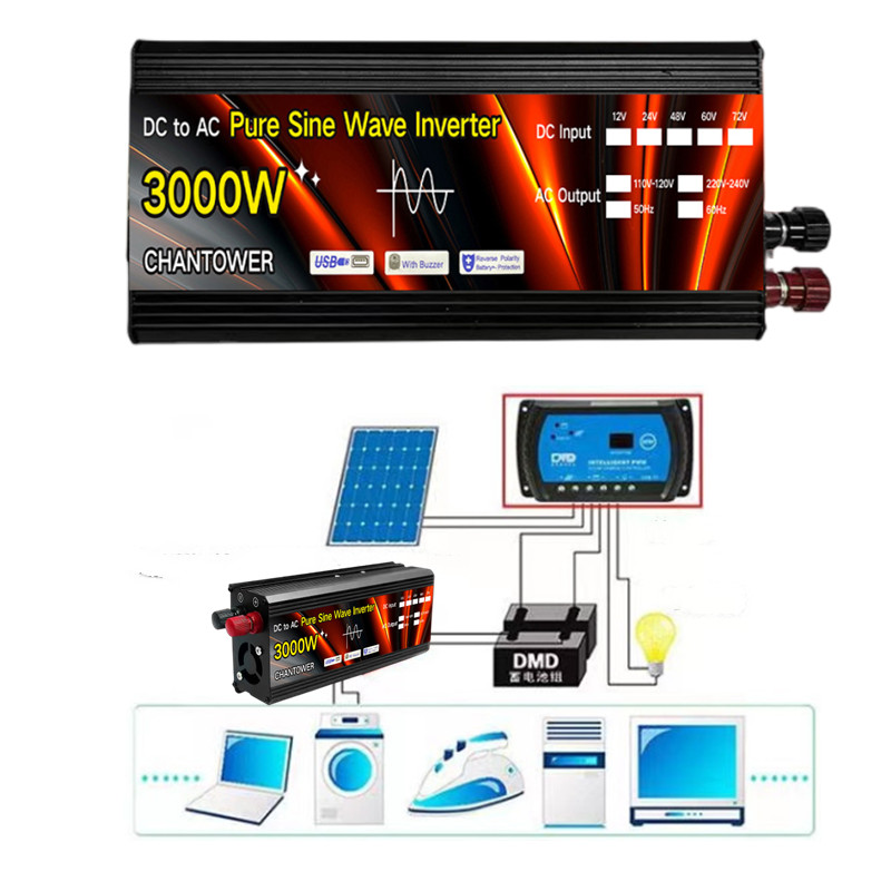 Чистый синусоидальный инвертор 12 В 220 В солнечный инвертор 1000 Вт 2000 Вт 3000 Вт 4000 Вт трансформатор напряжения силовой преобразователь панель автомобильный инвертор