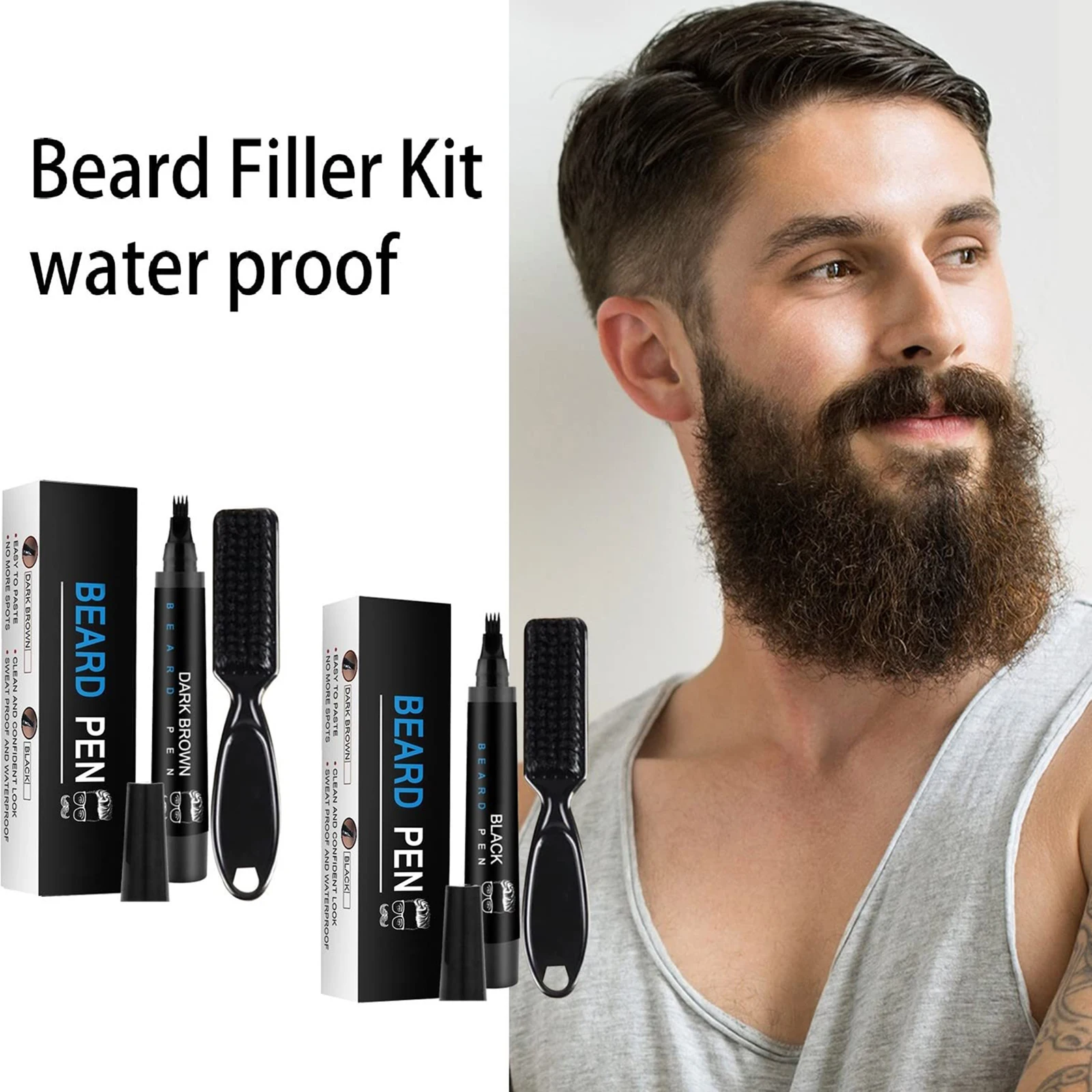 Набор для наполнителя карандашей для бороды для мужчин, набор для наполнителя с щеткой, инструмент для ремонта мужских усов, ручка для волос, увеличитель длительного покрытия