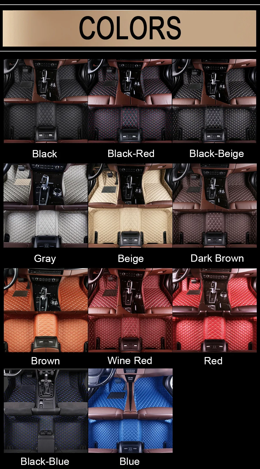 4.Material: High-quality, durable artificial leather;Waterproof, anti-fouling, protect the interior of the car ; Easy to install and easy to clean.