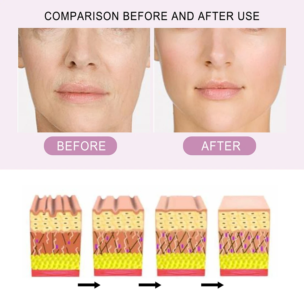 2. Эффективно разбавляет тонкие линии, удаляет морщины, носогубные линии, морщины вокруг глаз, морщины на лбу и т. д. и делает кожу лица более гладкой и упругой.
