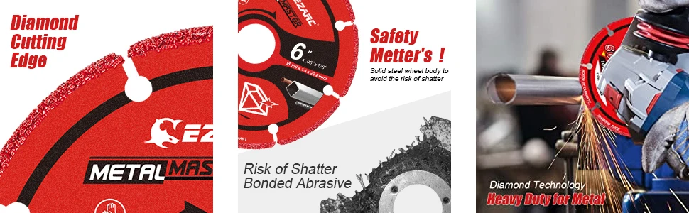 Алмазный режущий диск EZARC с твердым стальным корпусом колеса 100% Избегайте риска повреждения и повреждения для дополнительной безопасности.