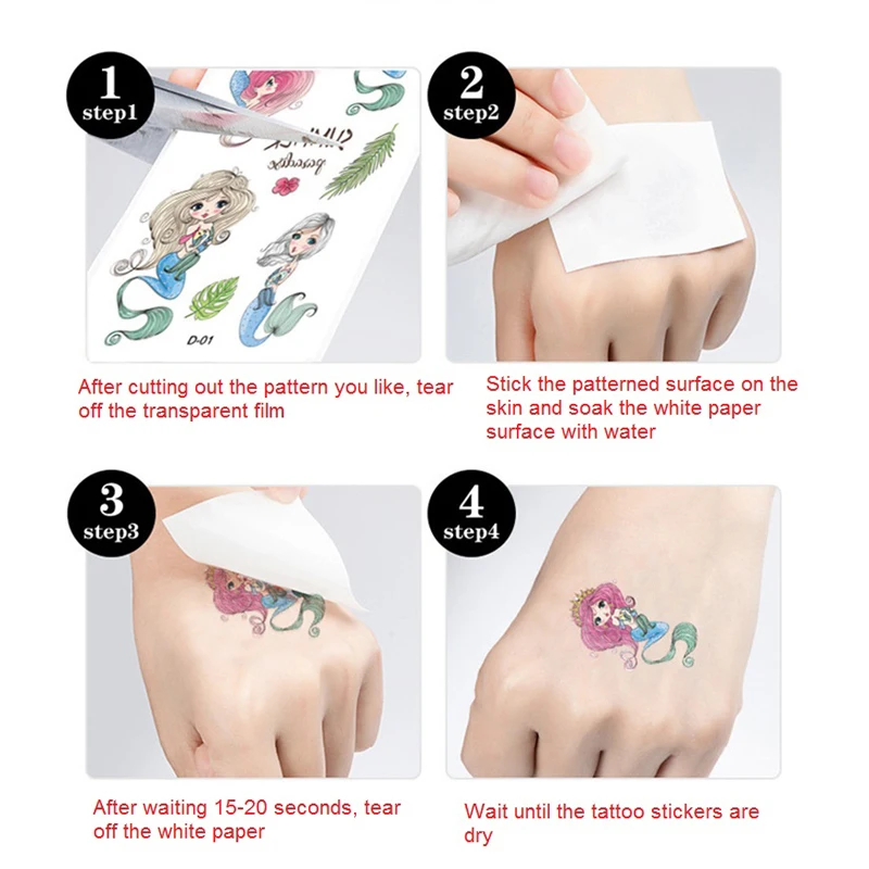 Использование: нанесите рисунок на подложку бумаги на кожу с небольшим количеством воды