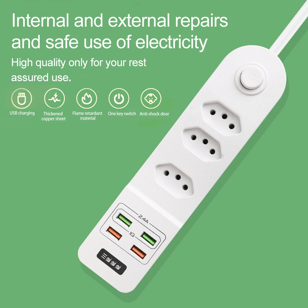 Бразильская лента питания с 4 выходами 4 usb-порта зарядного устройства с переключателем PC огнестойкий 2 м удлинитель для домашнего офиса ТВ-телефона