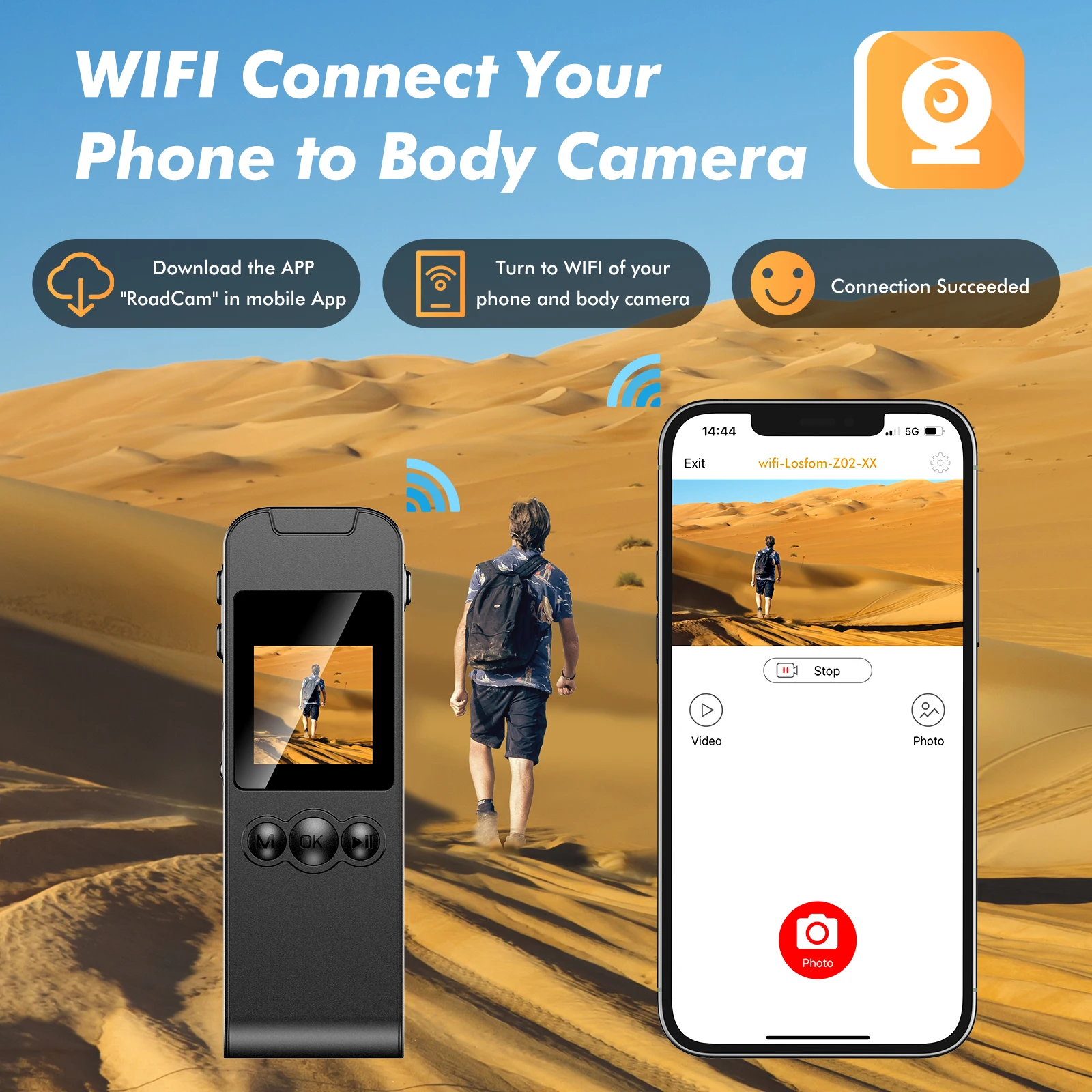 【Функция WiFi камкордера 】 камера WiFi поддерживает управление файлами и изменение настроек на стороне смартфона. Подключите камеру к телефону в любое время и в любом месте, чтобы получить быстрое воспроизведение. (приложение: RoadCam)