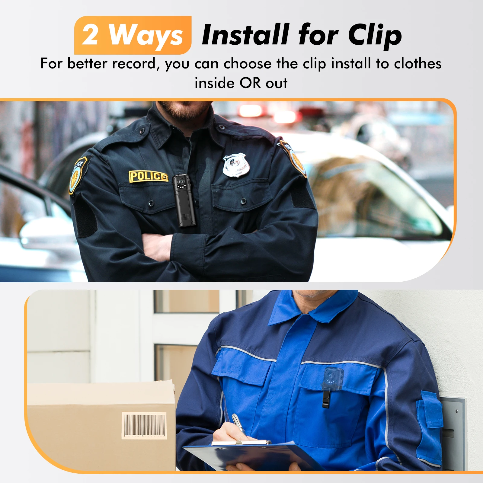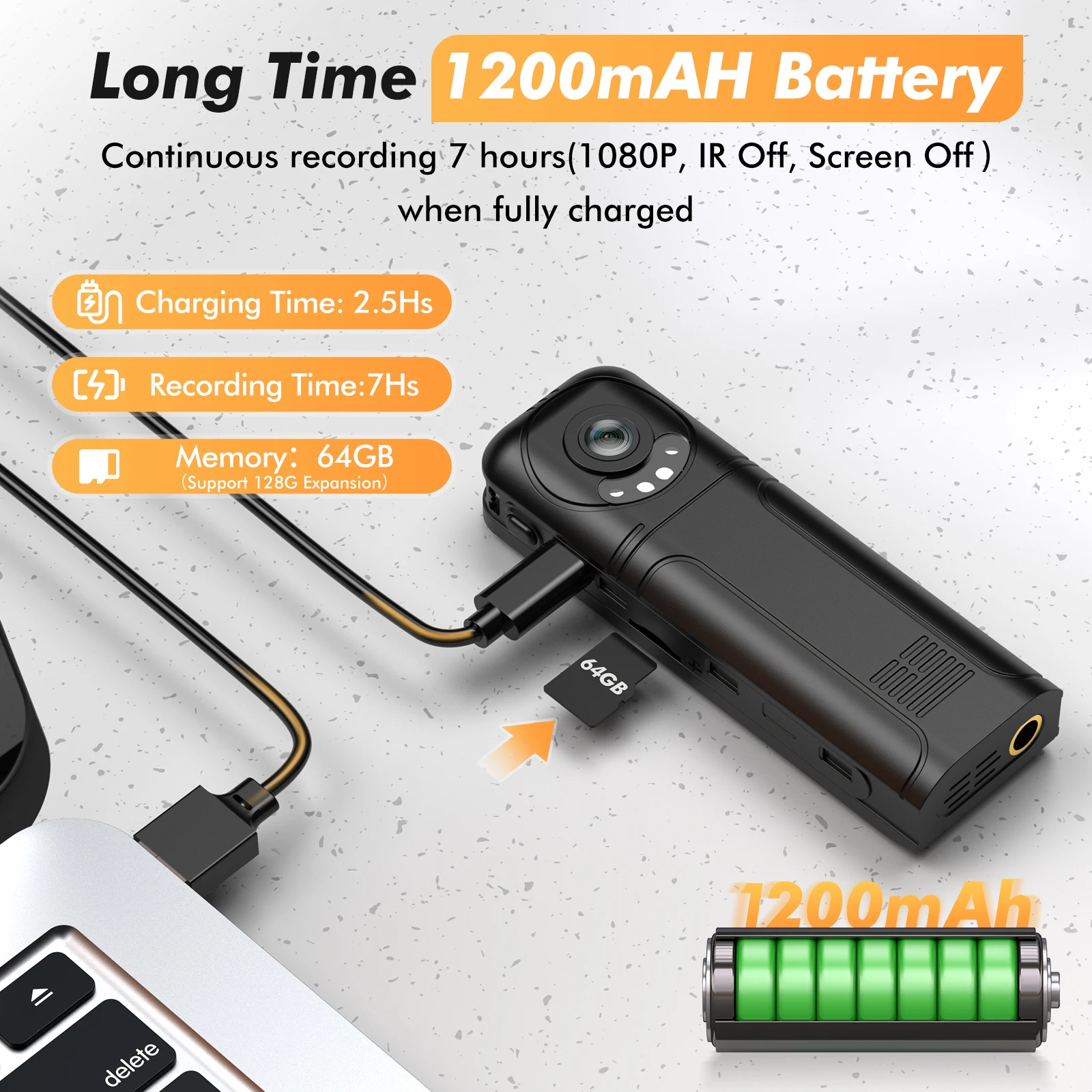 【 7 часов длинные Запись Time】 1,3 дюймов Экран камера поставляется с зажимом для всех ваших видео в реальном времени, фотография, и аудио Запись s (Поддержка Макс 128 ГБ), аккумулятор емкостью 1200 мАч записывает кадры в течение 7 часов подряд (1080P & IR Off). Идеально подходит для верховой езды, полицейского патруля, записи встреч, дома