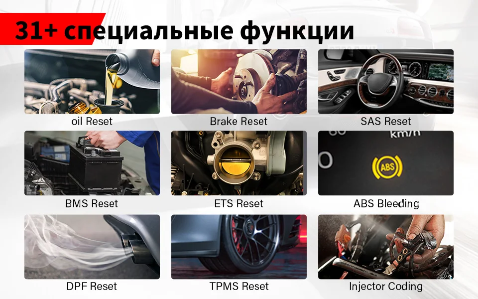 Вы можете найти 15 видов часто используемых функций сброса в меню сброса и другие специальные функции в меню диагностического программного обеспечения марки автомобиля.
