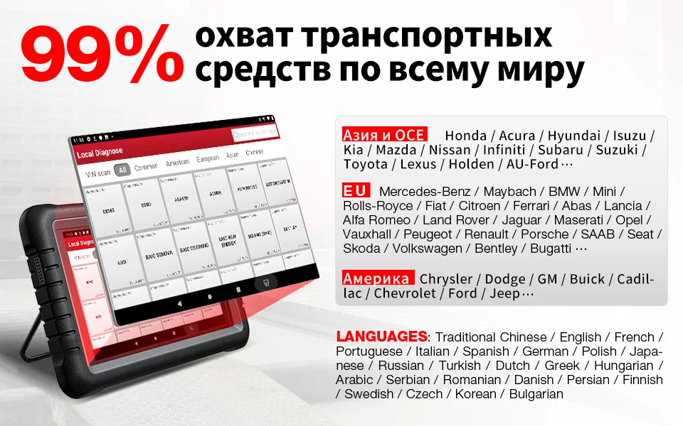 Этот диагностический планшет поддерживает функцию кодирования ЭБУ на большом количестве производителей, включая Benz, Ford и другие. Он также поддерживает быструю диагностику с помощью сканирования VIN нажатием одной кнопки.
