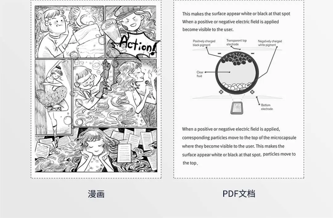 Похож на традиционную бумагу, читает в естественный светильник, не стробоскопичен, может регулировать шрифт, размер и расстояние, долгосрочные очки для чтения без стресса, так же, как чтение бумажной книги
