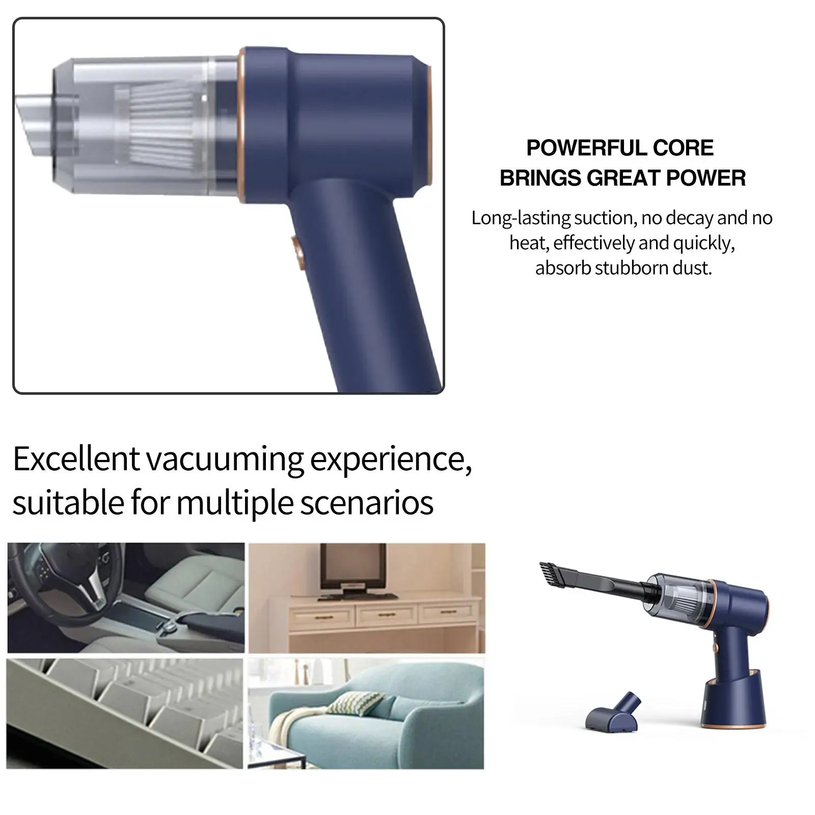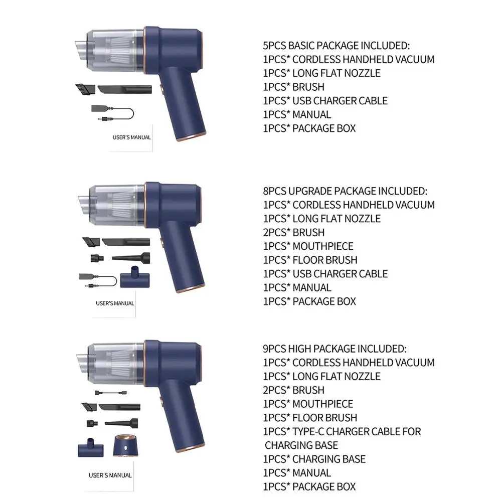 4.3 вида аксессуаров, чистые без мертвого вакуума поставляется с 3 видами аксессуаров. Щелевая насадка для узких зазоров, углов. Насадка для кистей для ковров и волос. Вакуумные насосные аксессуары и надувные аксессуары, удовлетворят ваши потребности.
