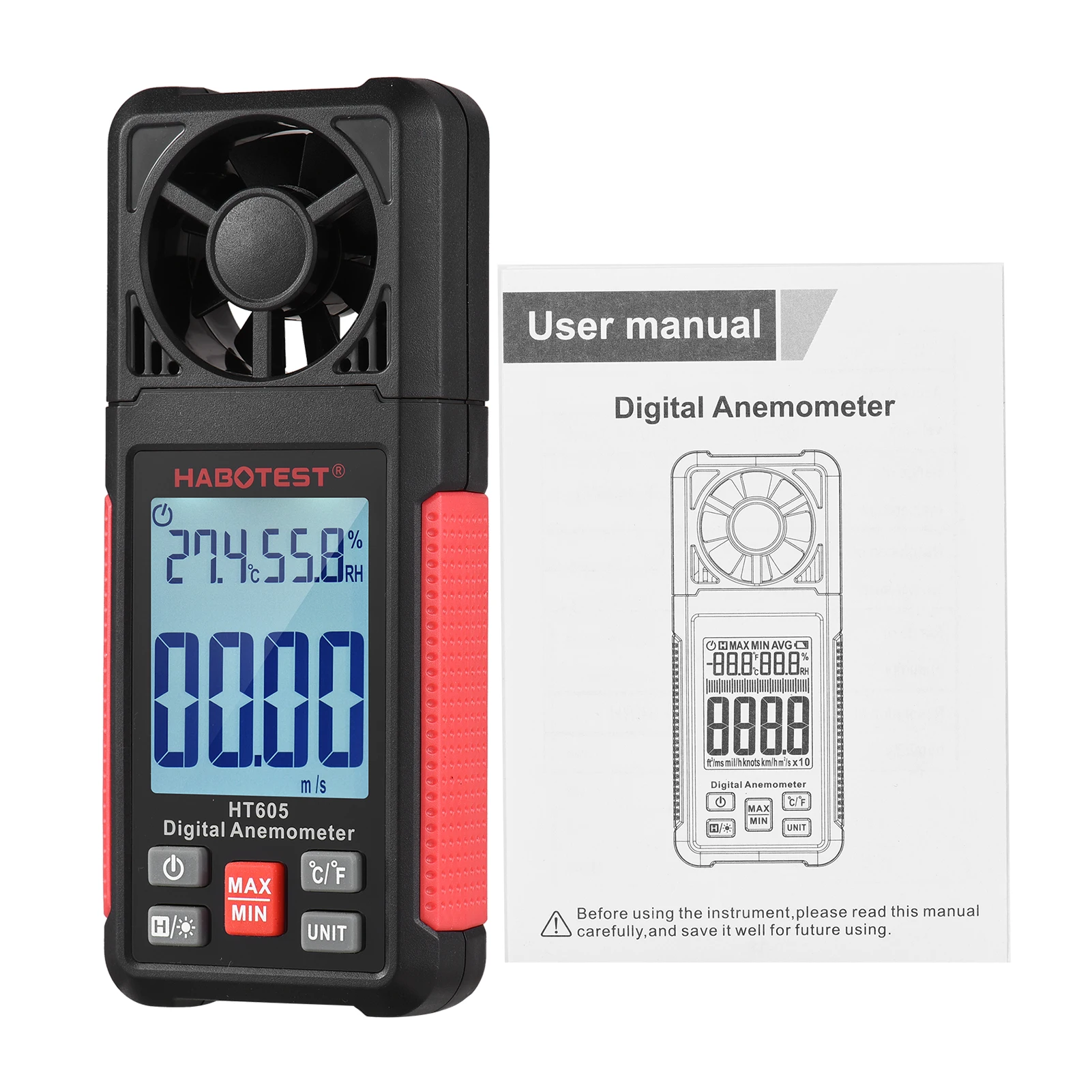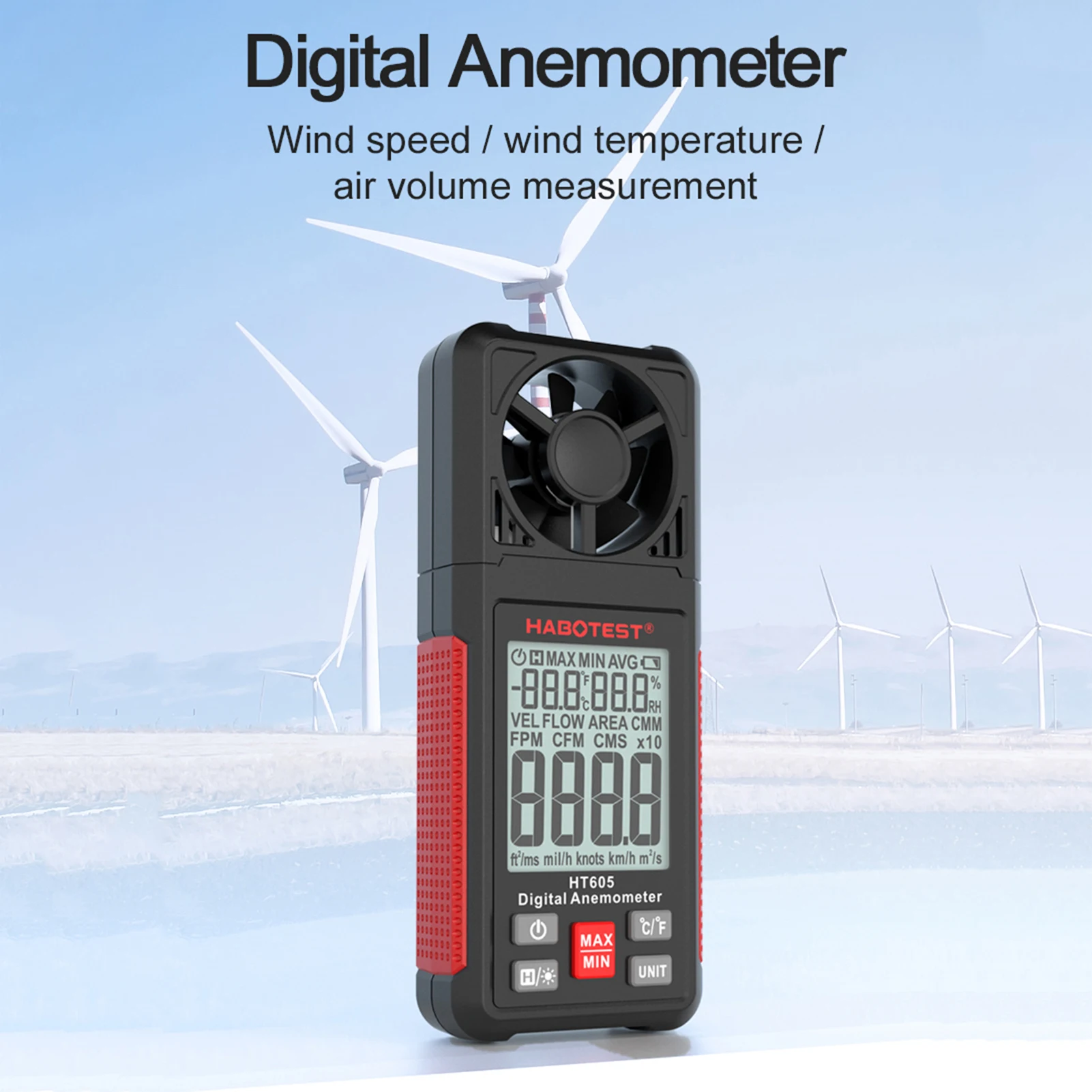 Ручной ЖК-экран: Этот датчик скорости ветра оснащен ЖК-экраном с подсветкой, может читать лучше и четче как под солнцем, так и в темноте. Компактный и легкий, вы можете держать его в кармане.