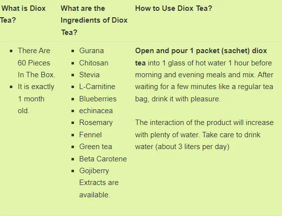 Ингредиенты чая Diox
