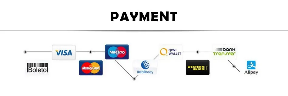 1.Aliexpress поддерживает Visa,Boleto,MasterCard,Maestro дебетовые карты, Western Union,Webmoney,QIWI и банковский перевод через банки. 2. Если у вас все еще есть какие-либо вопросы по оплате, не стесняйтесь связаться с нами.