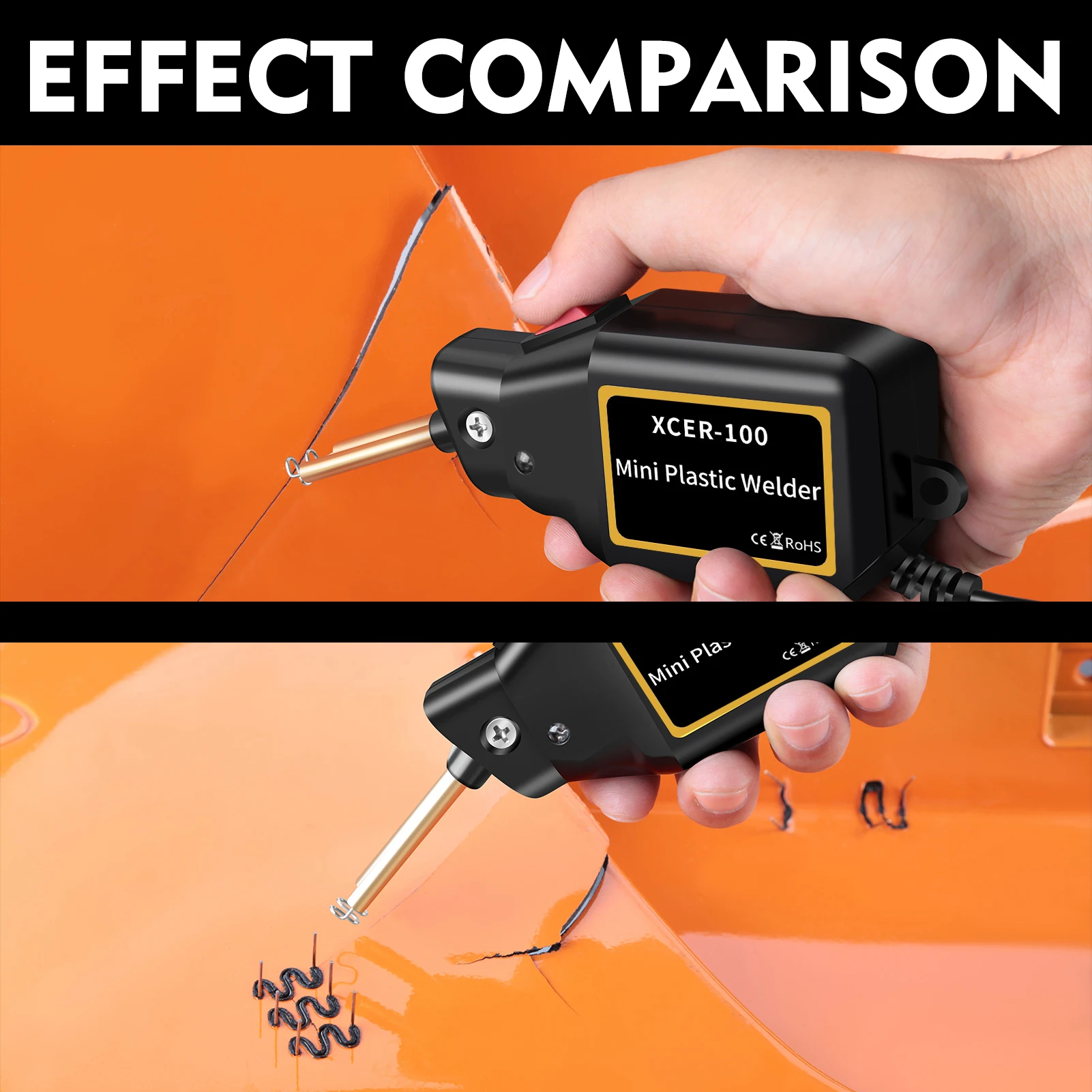 Ремонт по крайней мере 98% пластмасс на рынке. Идеально подходит для ремонта: бампер, приборная панель, держатель лампы, пластиковое кольцо, радиатор, спойлер, ручки, фары, Пластиковые крылья, автомобильное и мотоциклетное пластиковое устройство и т. Д.