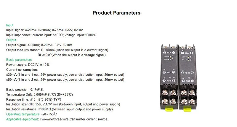 Этот продукт изолирует и преобразует все виды сигналов, таких как напряжение, ток и МВ на промышленной площадке в Стандартный ток, и передает сигналы напряжения в комнату управления, PLC, DCS и инструмент отображения и т. Д.
