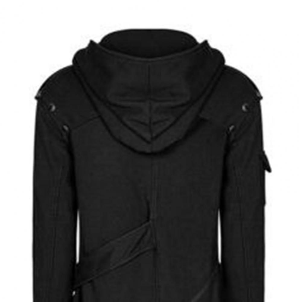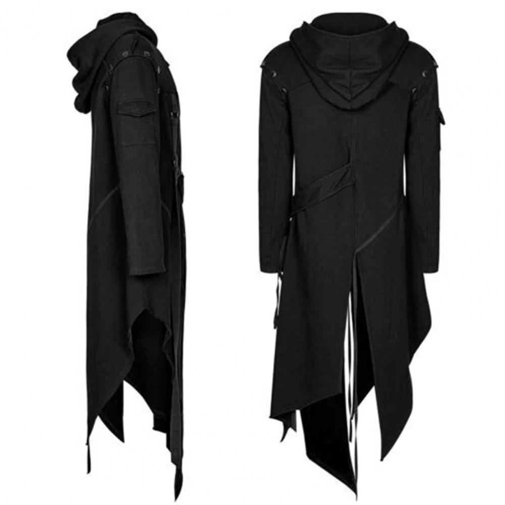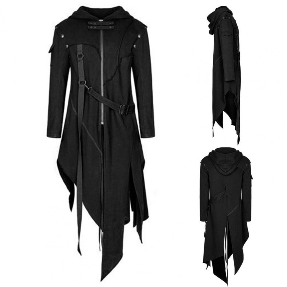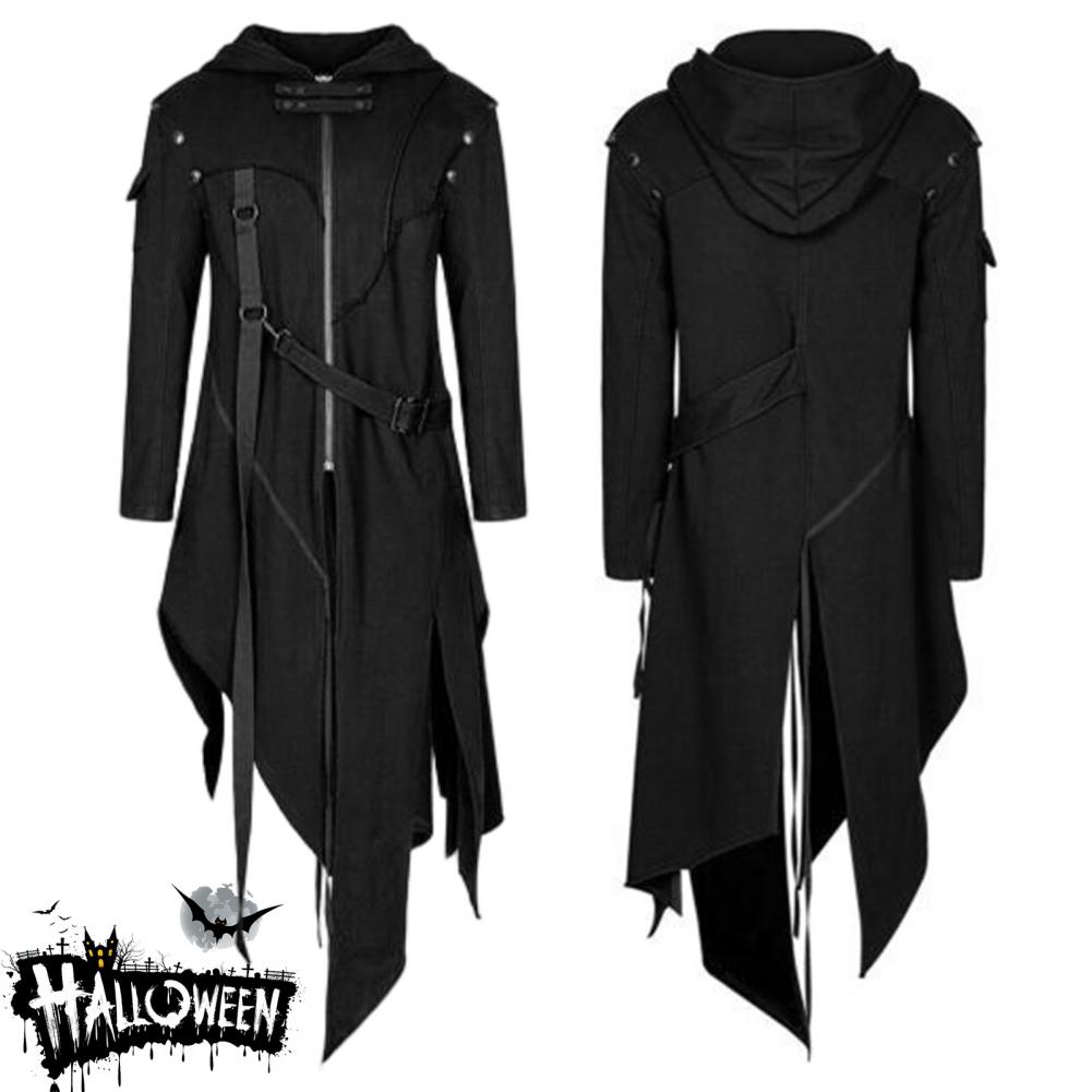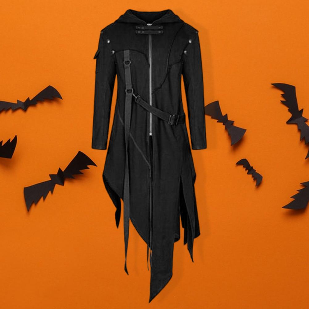 Осенне-зимнее мужское длинное пальто однотонное Асимметричное пальто с длинными рукавами и капюшоном на молнии с ремешками для Хэллоуина