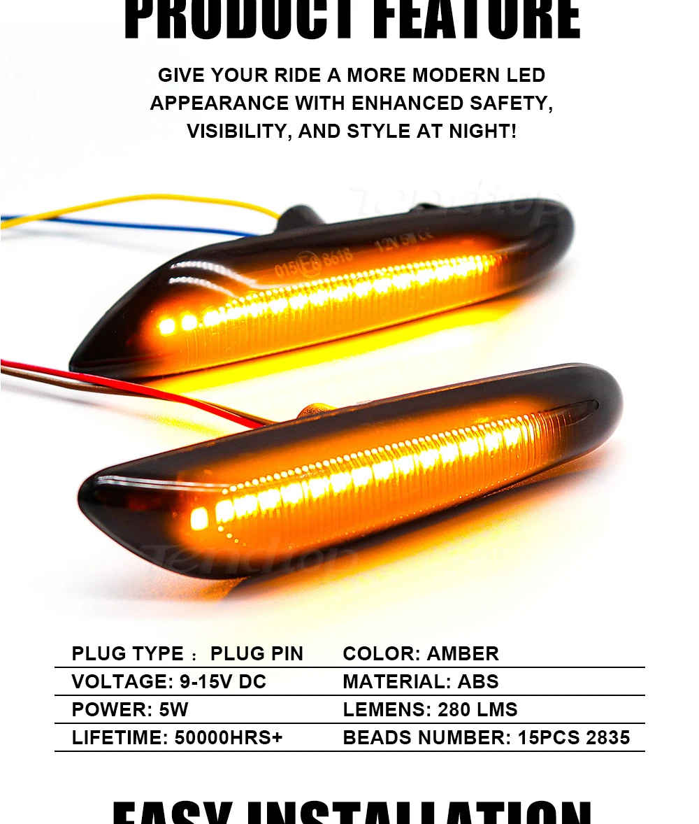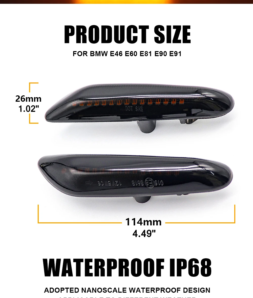 -Идеальное обновление или замена для оригинальных боковых маркеров, дайте вашему автомобилю обновленный современный вид.