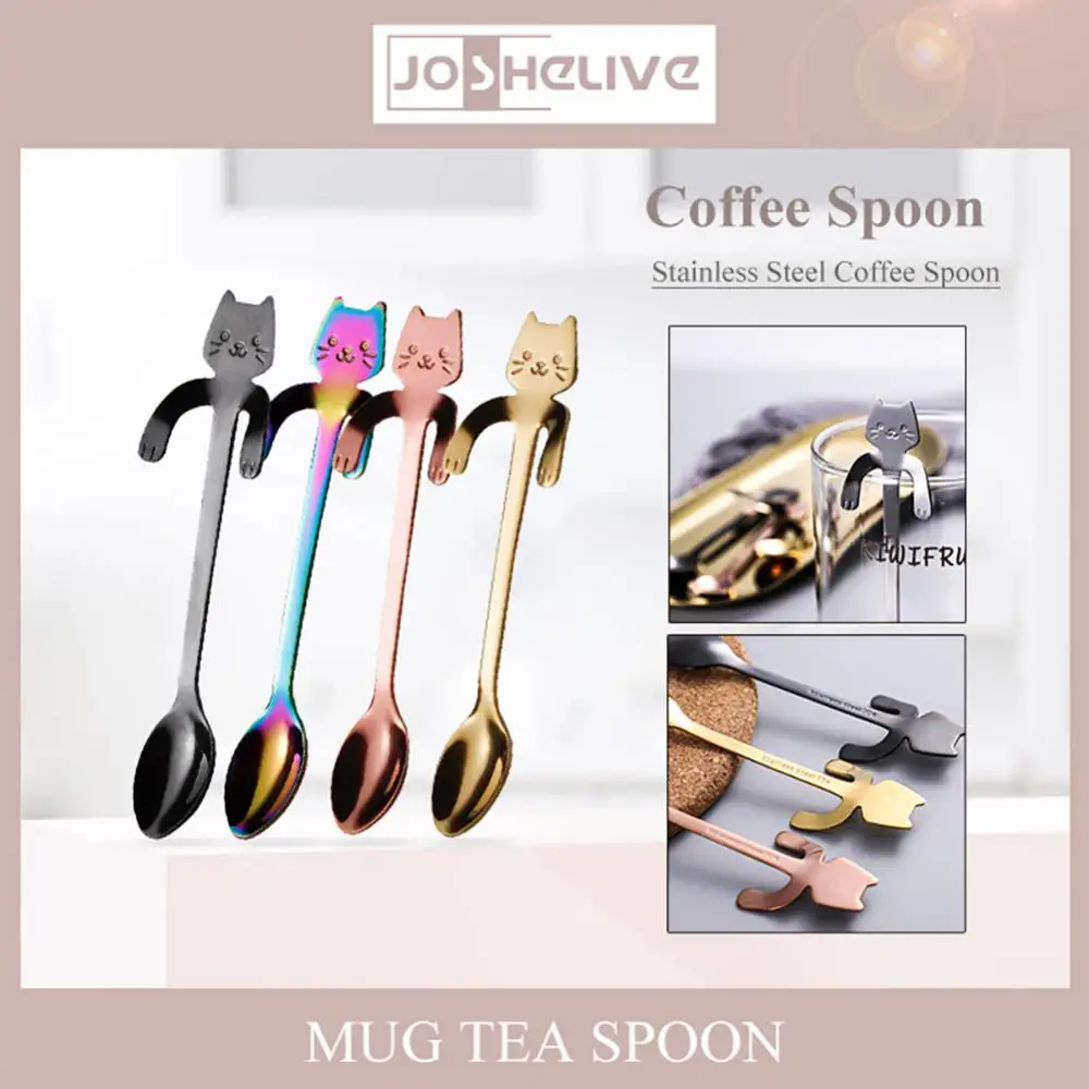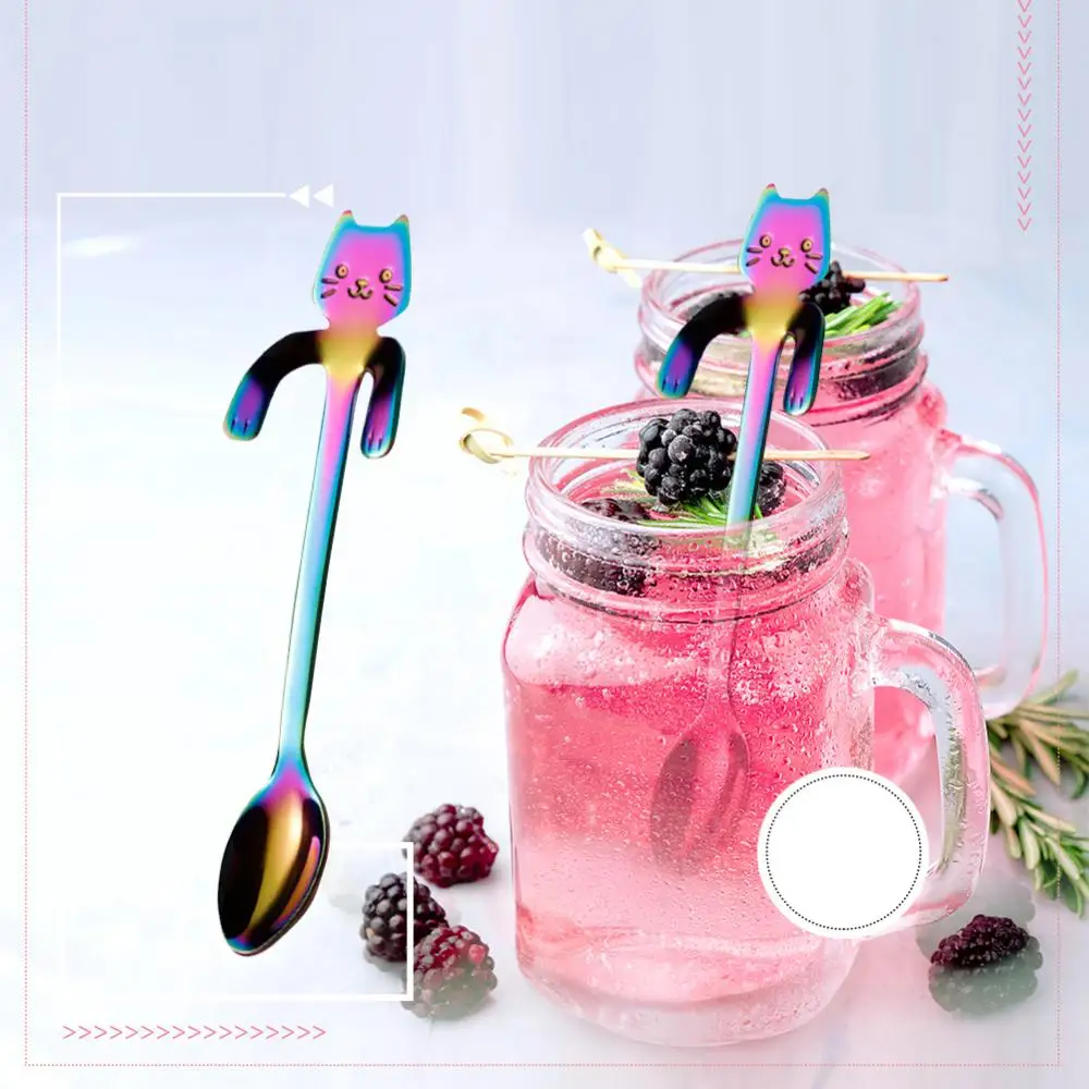 304 нержавеющая сталь мультяшная кошка подвесная чашка кофейная ложка кружка чайная ложка Мини Милая кофейная ложка для детей Ложки Посуда