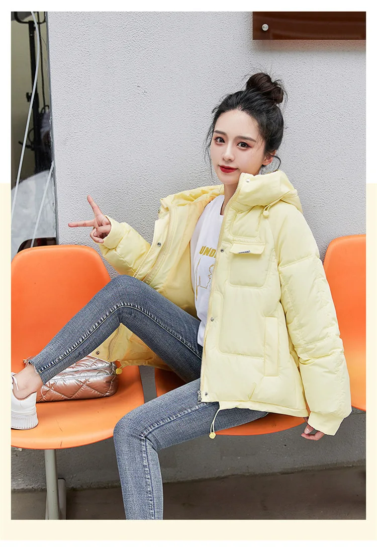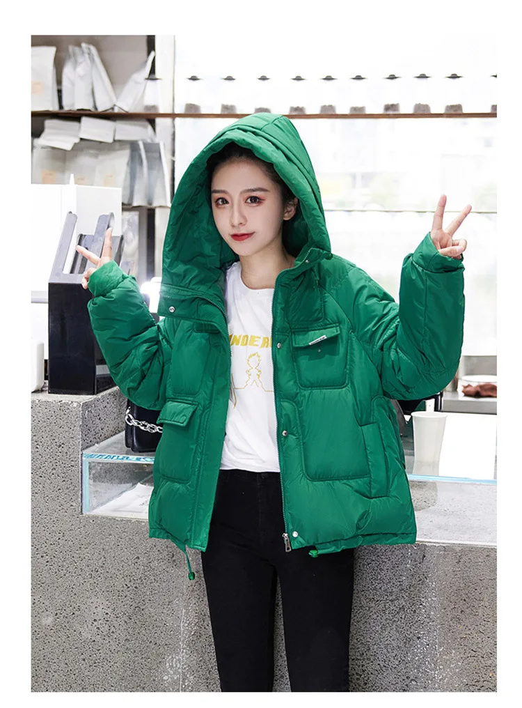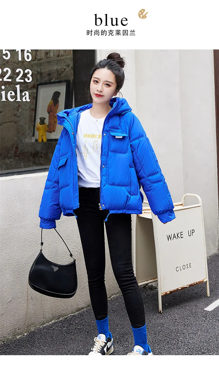 2022 зимняя куртка, новая стеганая парка с капюшоном на пуху, женская теплая Повседневная Свободная парка, студенческое короткое хлопковое пальто