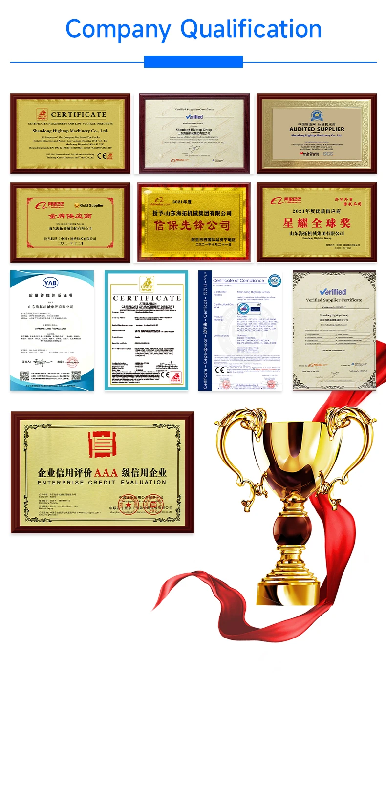 CNMC Group получила международную сертификацию системы качества ISO9001, сертификацию CE Европейского союза, сертификацию SGS и Российскую сертификацию по ГОСТ. Научная Инновация-это движущая сила CNMC. В 2000 году наша компания и китайский научно-технический университет вместе создали испытательные лаборатории для ралли стальных продуктов, стремимся повысить ударопрочность продукта, В 2002 году компания и Шанхайский институт химических исследований совместно создали экспериментальный исследовательский центр по химическому материалу. Благодаря обмену и обучению, CNMC механические, продукты в стабильности производительности были значительно улучшены.