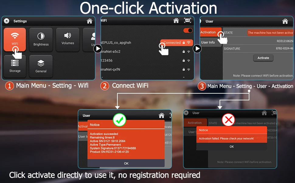 1. Если на экране появится запрос «активация не удалось», проверьте, является ли ваше сетевое соединение нормальным.