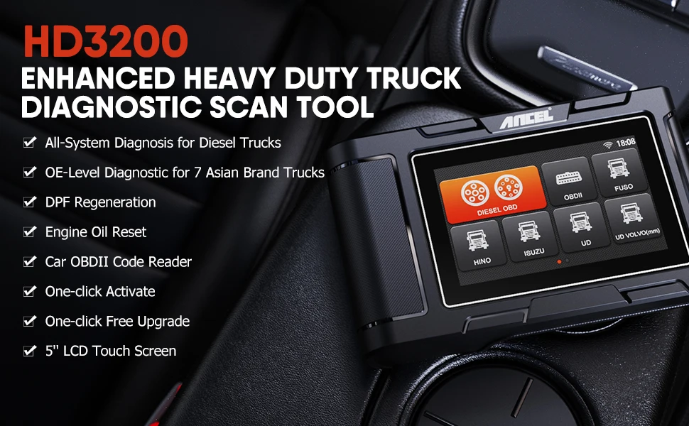 По сравнению с другими сканерами грузовиков, диагностический сканер для грузовиков ANCEL HD3200 HD добавила диагностику FUSO, ISUZU, UD, HYUNDAI, KIA и других азиатских моделей дизельных грузовиков с более богатыми диагностическими функциями, Которые могут показать большинство причин проблем системы и сказать вам, какие системы грузовика имеют проблемы и нужно ли их отремонтировать. Это не только подходит для владельцев грузовиков, но и очень подходит для ремонтных магазинов грузовиков, это инструмент DIY для любителей грузовиков. Если вам нужен экономичный сканер грузовика, HD3200 будет хорошим выбором, это сэкономит вам много времени и денег.