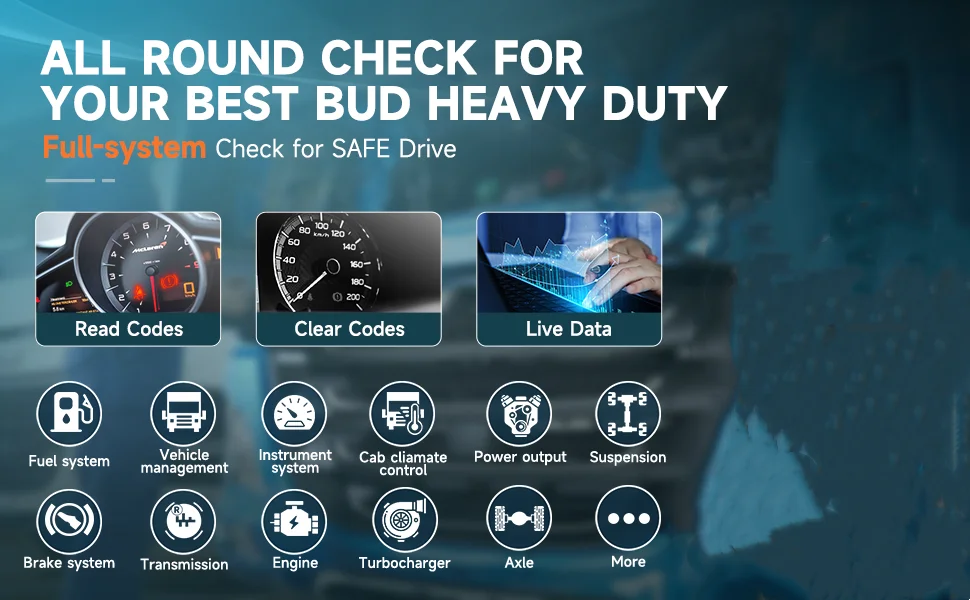 ✔③ Подвеска: если есть проблема с подвеской, грузовик будет удариться при езде по неровным дорогам. Сканер HD3100 Pro может очистить соответствующие коды неисправностей, чтобы гарантировать, что транспортное средство может работать плавно, чтобы дать вам удобный опыт вождения.