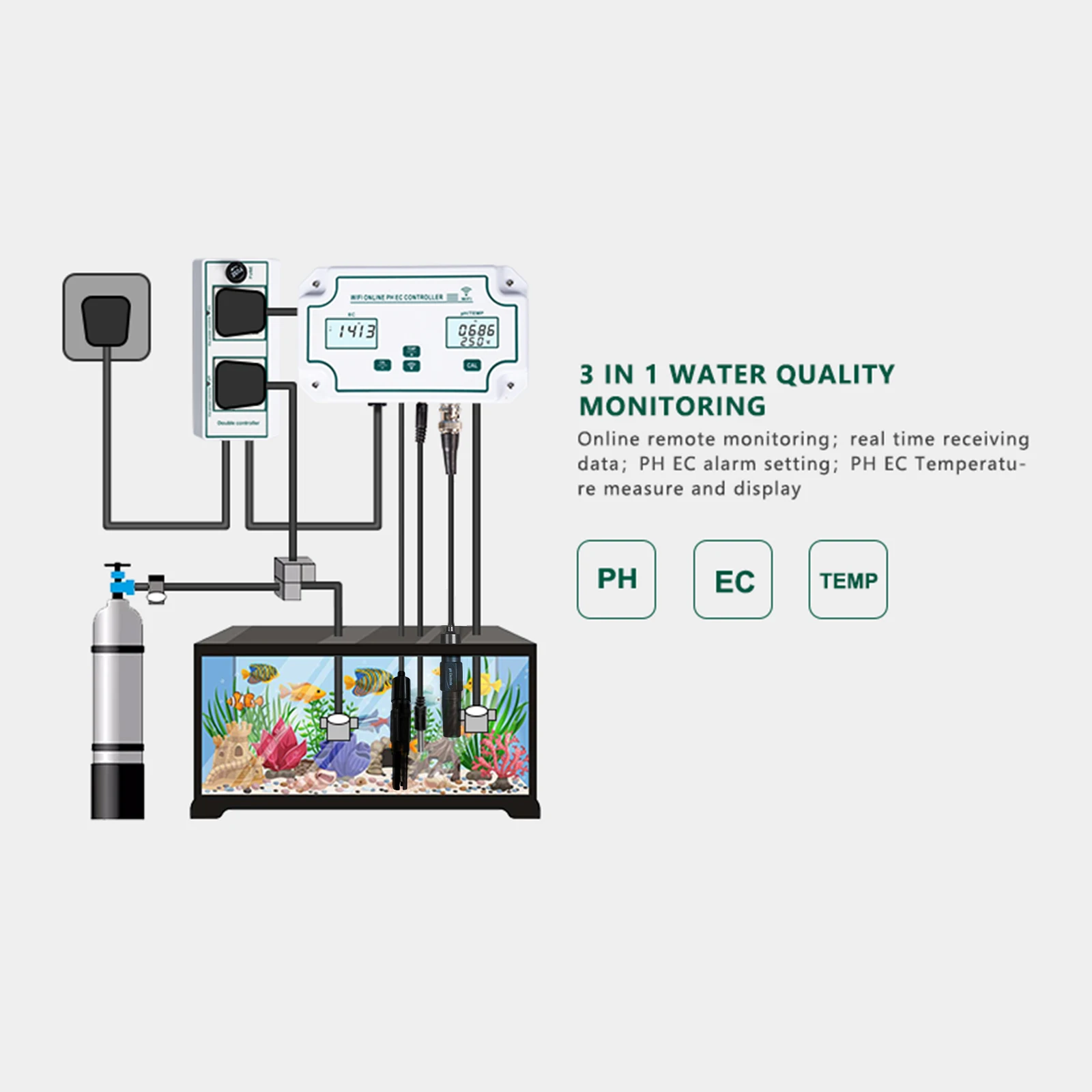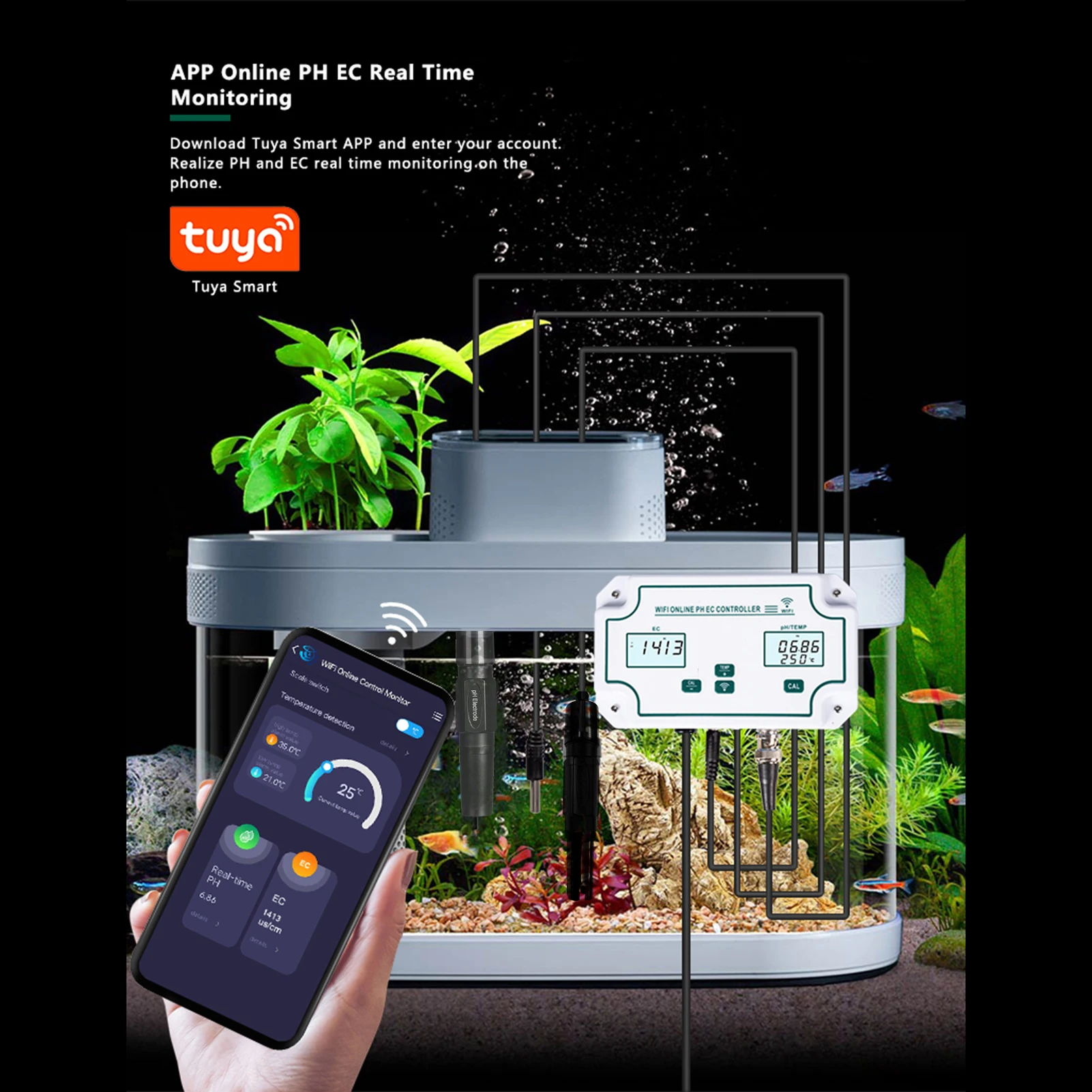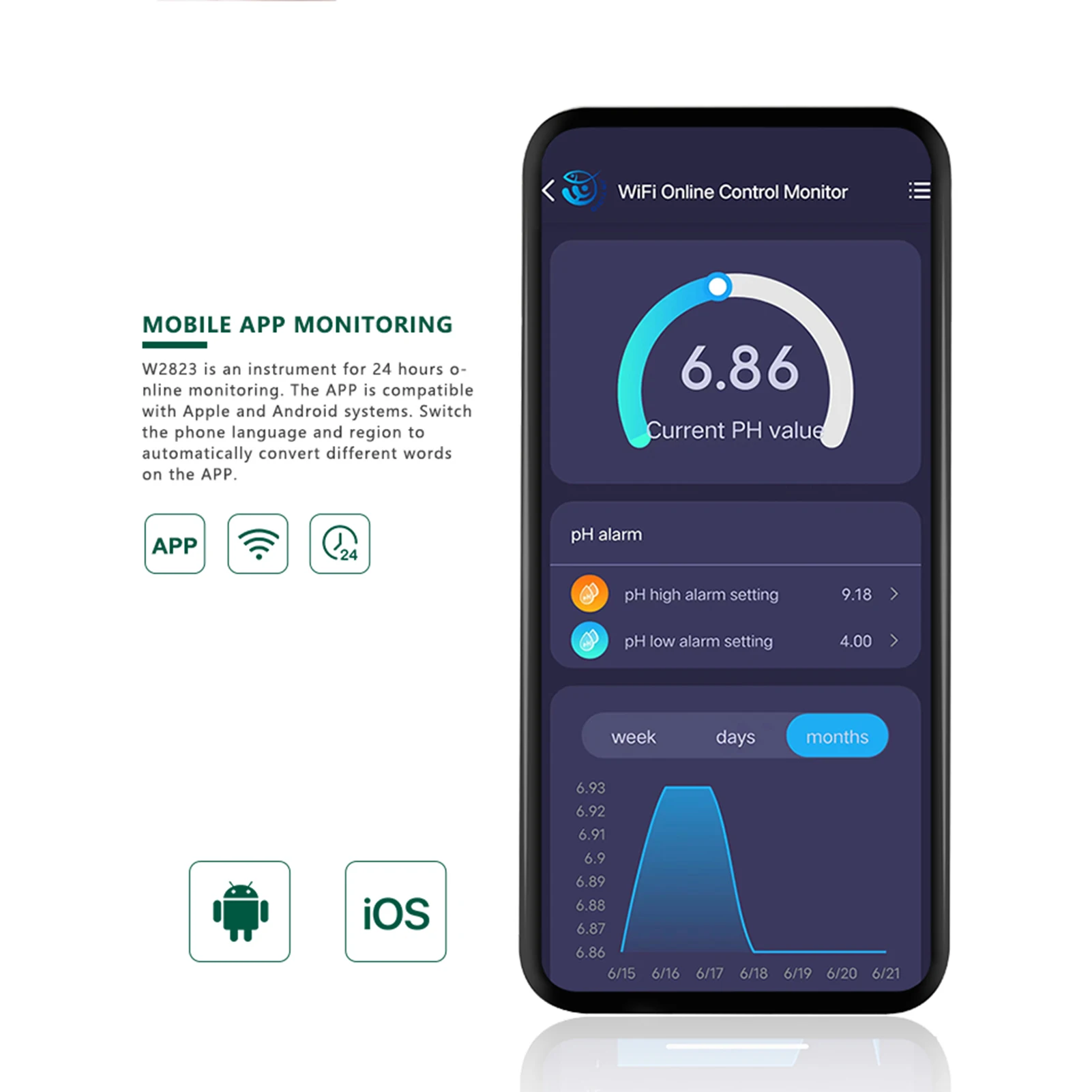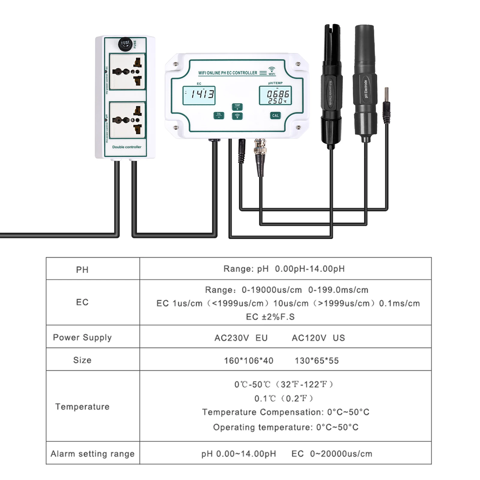 Онлайн-контроллер WiFi pH EC позволяет в режиме реального времени контролировать pH и EC через ваш смартфон в приложении (бесплатно), Он совместим с системой ios и Android, идеально подходит для 24 часов онлайн-мониторинга.