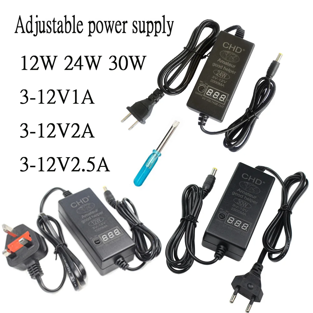 Регулируемый источник питания переменного тока в постоянный ток 3 в 4 в 5 в 6 в 7 в 8 в 9 в 10 в 11 в 12 В 1A 2A 2.5A мощность 12 Вт, 24 Вт, 30 Вт соответственно