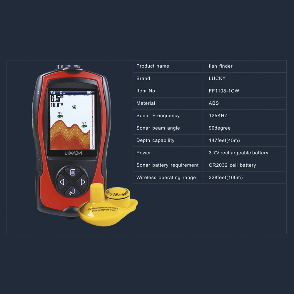 LUCKY FF1108-1 Portable Fish Finder Ice Fishing Sonar Sounder Alarm Transducer Fishfinder 0.7-100m Fishing Echo Sounder
