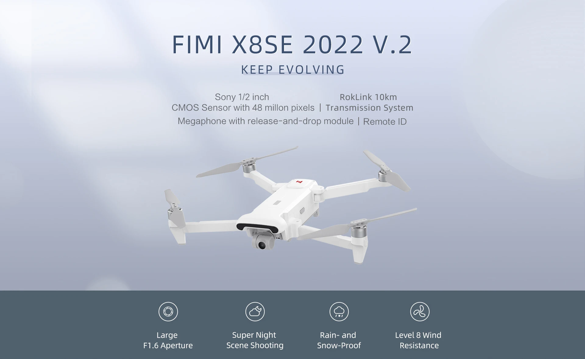 8. Cmos-сенсор Sony 1/2 48MP: Усовершенствованный cmos-датчик Sony 1/2 ", обеспечивающий большой размер пикселей 1,6 мкм на основе технологии пикселя «Quad Bayer», может эффективно уменьшить шум во время ночной съемки с воздуха.