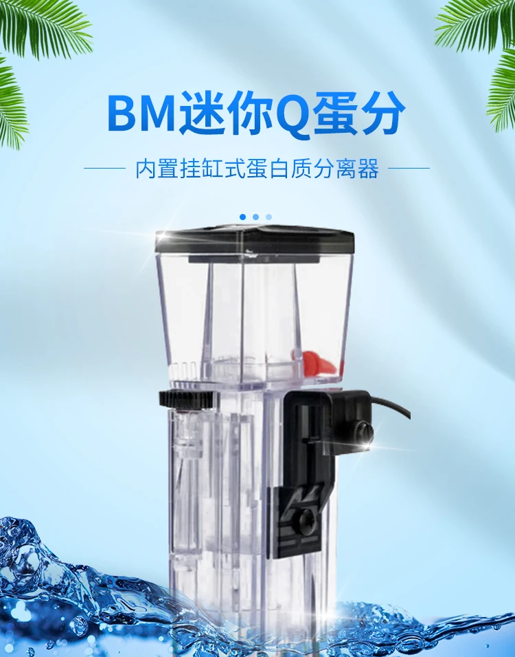 MiniQ содержит коробку для утечки воды и коническую горловину для сбора. Вода и воздух равномерно смешиваются во время работы и эффективность сброса сточных вод высока; Недавно разработанная прецизионная форма реализует канал выхода воды «лабиринт» в бочке, И маленькие пузырьки погружаются и переливаются при сливе. Эффект разделения хороший, и клапан регулировки уровня воды ручного типа может быстро и точно регулировать уровень воды скиммер, чтобы держать скиммер в хорошем состоянии.