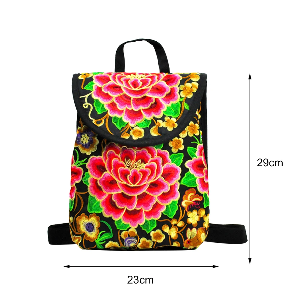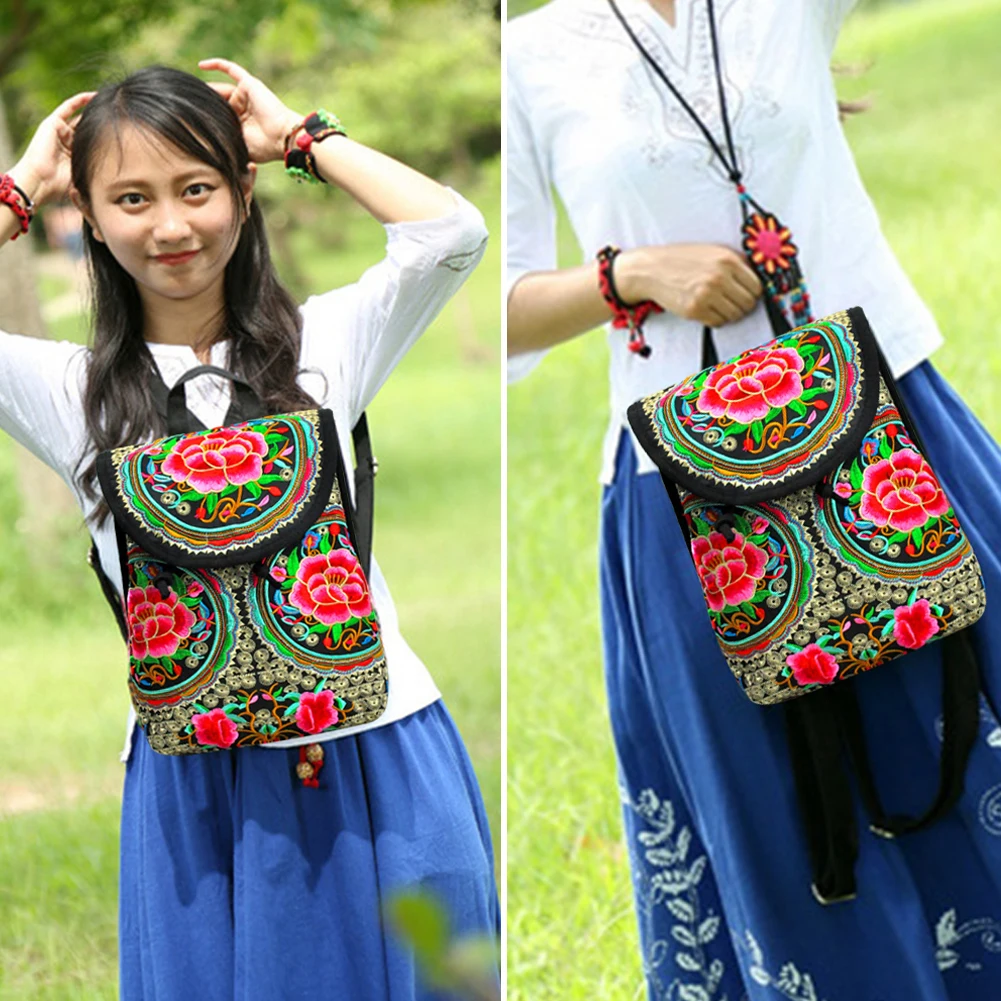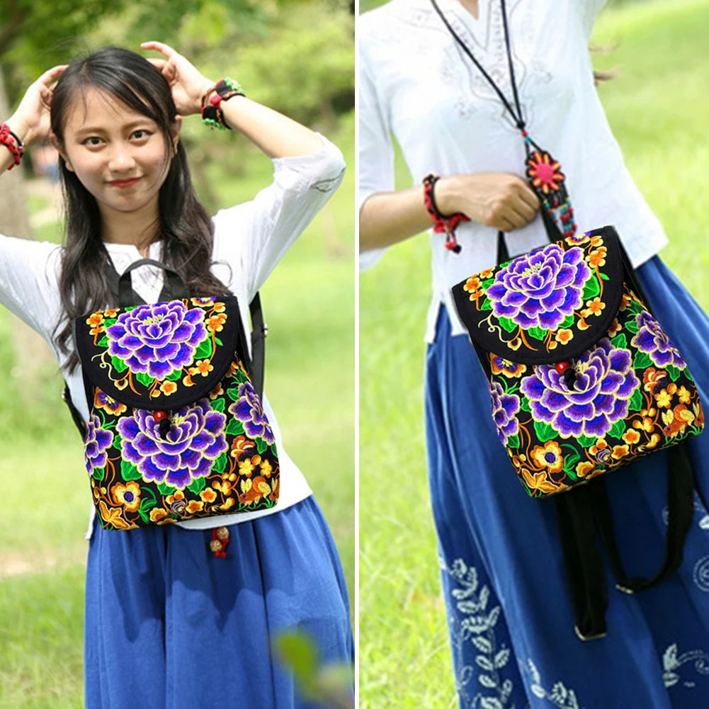 Женский холщовый рюкзак с цветочной вышивкой в этническом стиле, дамские винтажные сумки большой вместимости, дорожные рюкзаки