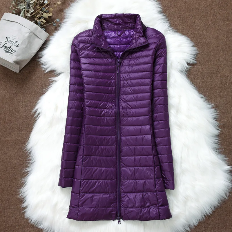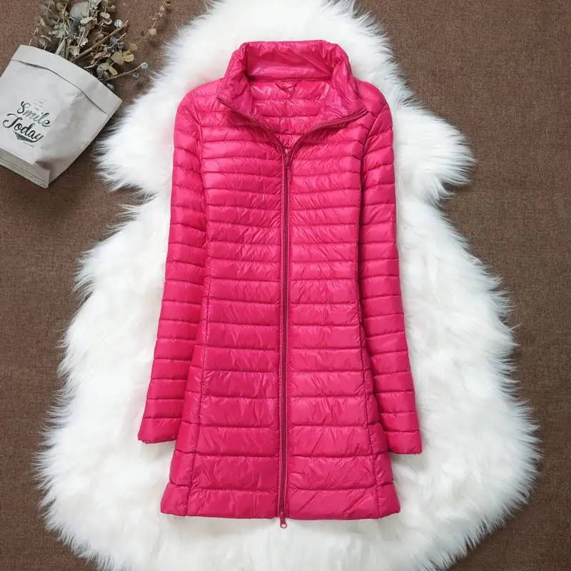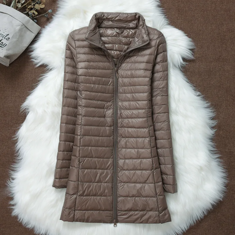 Женское зимнее пуховое пальто, новинка 2022, ультра-светильник, тонкий пуховик на утином пуху, Модные женские длинные пуховые парки, портативная теплая верхняя одежда