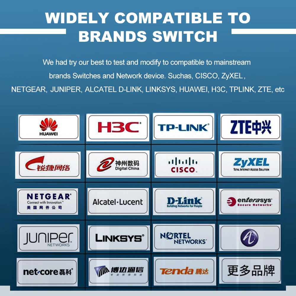 We had try our best to test and modify to compatible to mainstream brands Switches and Network device. Such as, CISCO, ZyXEL,NETGEAR, JUNIPER, ALCATEL, D-LINK, LINKSYS, HUAWEI, H3C, TPLINK, ZTE, etc.