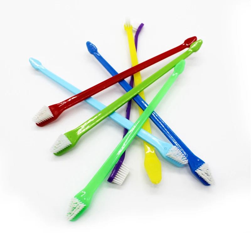 1 шт. зубная щетка для домашних животных с двойным концом, неприятный запах дыхания и зубной камень, Защита зубов, чистка собак, кошек, зубная щетка, товары для домашних животных, случайный цвет