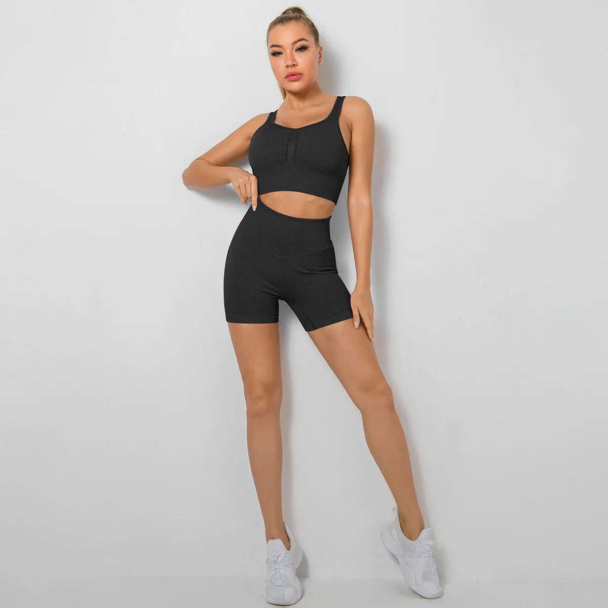 Комплект для йоги, бесшовный Женский спортивный костюм для тренажерного зала, комплект одежды для тренировок для женщин, спортивный комплект, укороченный топ + леггинсы, женский костюм для йоги, спортивный костюм