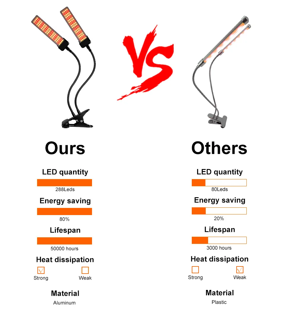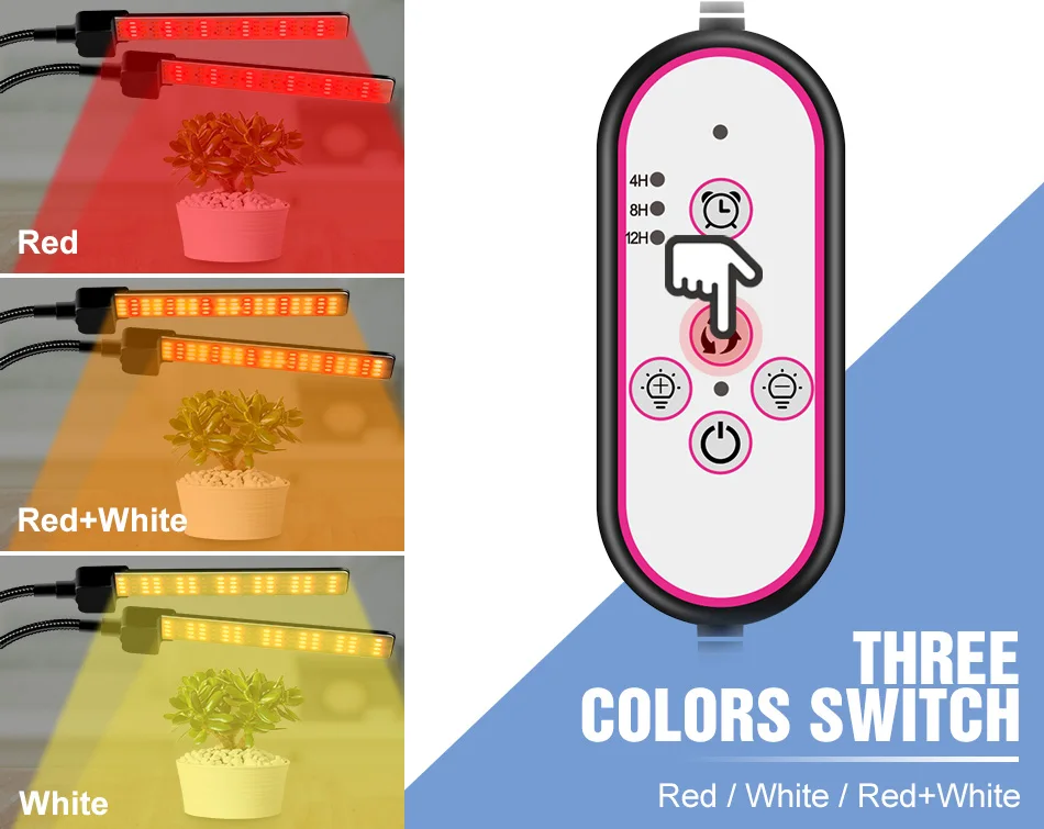 【Трехцветный светильник】Есть три светильник ing режимов, красный светильник режим, белый светильник режим, красный + белый светильник режим. Соответствующий режим освещения может быть выбран в соответствии с потребностями роста растений