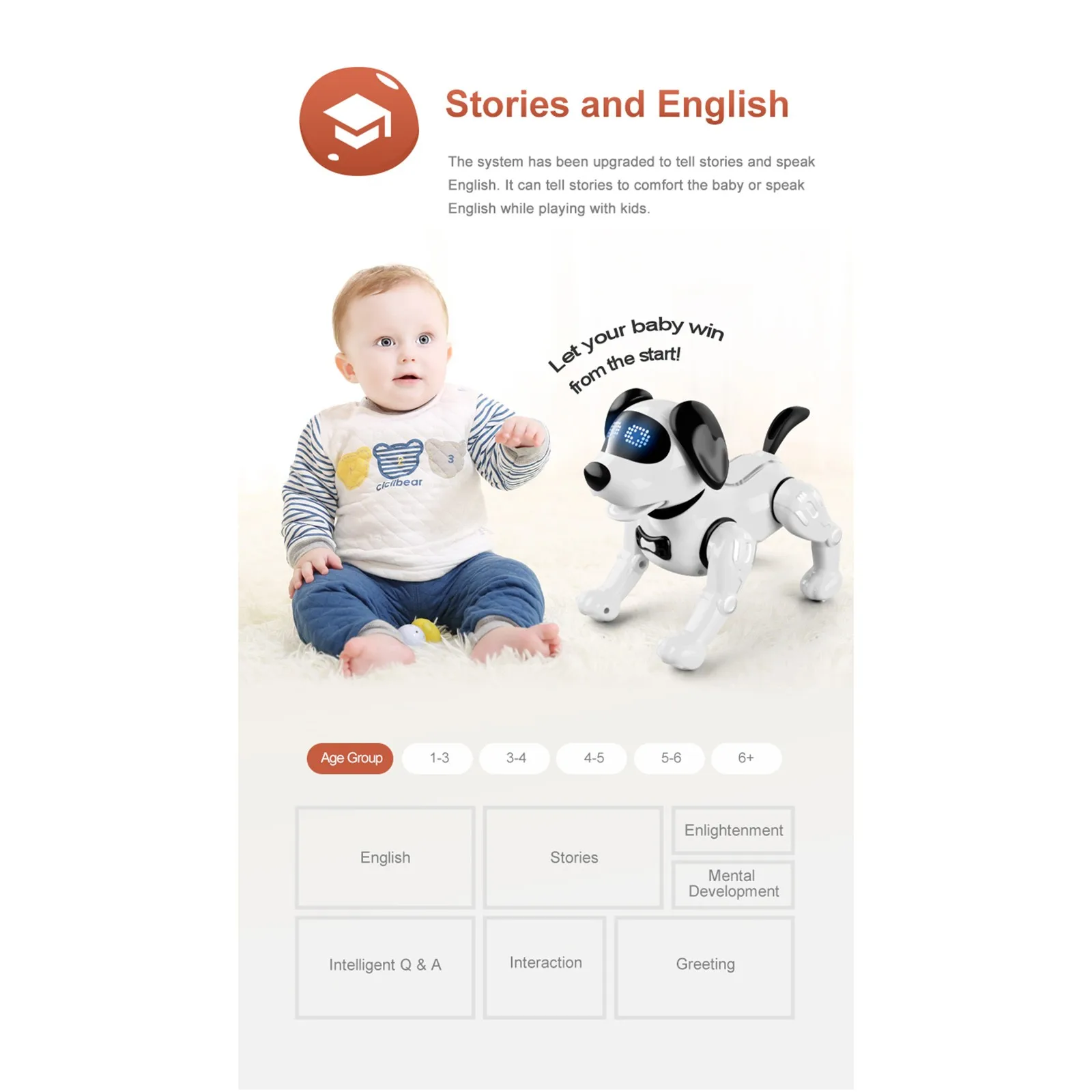 Говорящий на английском языке, который может утешить ребенка через повествование, и научиться