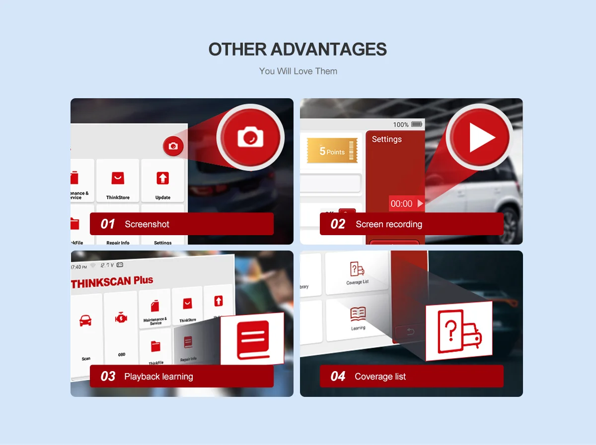 1. Для технического обслуживания, Thinkscan Plus, который удобен для переноски, является лучшим выбором для дорожного спасения или обслуживания от двери до двери.