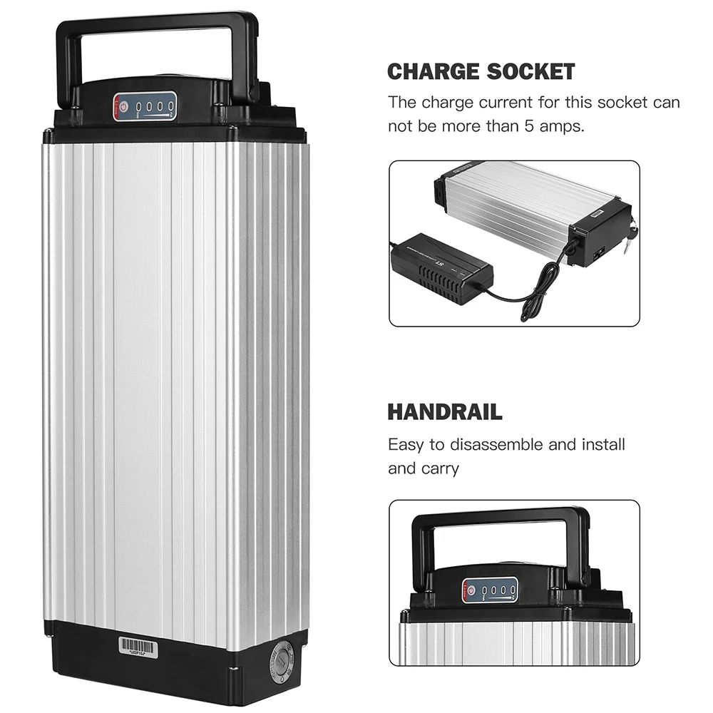 Детали в комплекте:1. Литиевая батарея с задним чехлом чехол2. Встроенный 50Amp BMS доска3. Зарядное устройство (54,6 V 2.0A 100-240V 50/60HZ зарядное устройство типа US ,UK,EU, штепсельная вилка австралийского стандарта)1. Длительный срок службы, большая емкость и хорошая ударопрочность