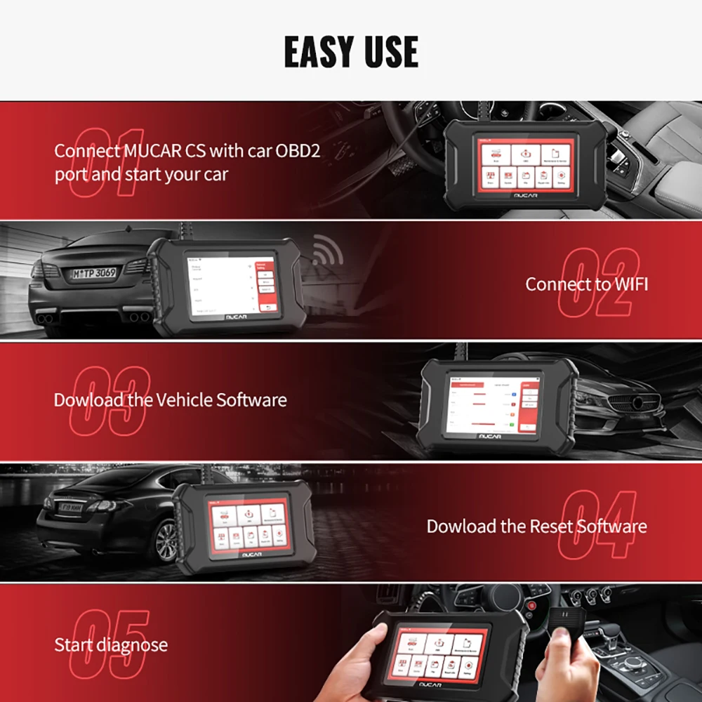 MUCAR CS2 позволяет легко очистить сигнальный светильник двигателя после завершения полной диагностики obd2. Основной целью этого инструмента является: