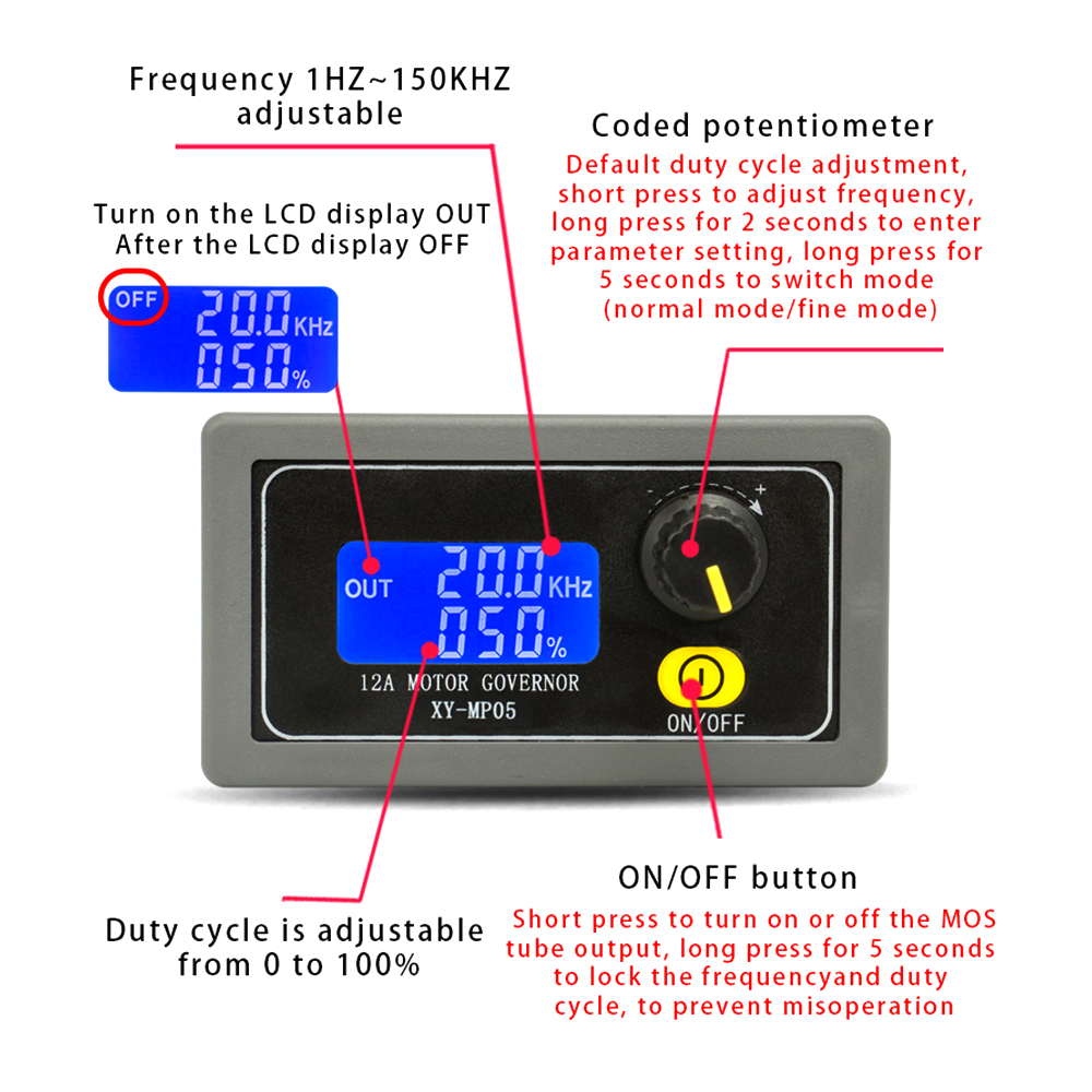 1. Частота и рабочий цикл жидкокристаллического дисплея, выключение и выход, четкие и четкие с первого взгляда!