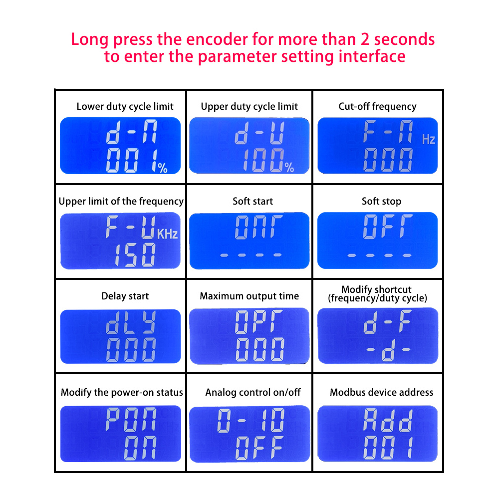 2. Использование цифрового кодировщика для настройки частоты и рабочего цикла, цифровая регулировка, удобная и быстрая,
