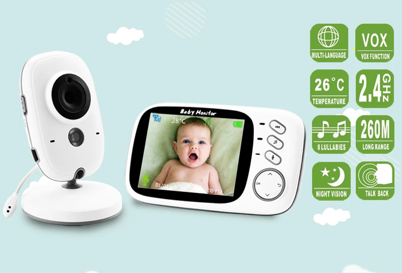 VB603 детский монитор 2,4G беспроводной с 3,2 дюймовым ЖК-дисплеем няня видео няня с камерой двухсторонний аудио детский спальный монитор