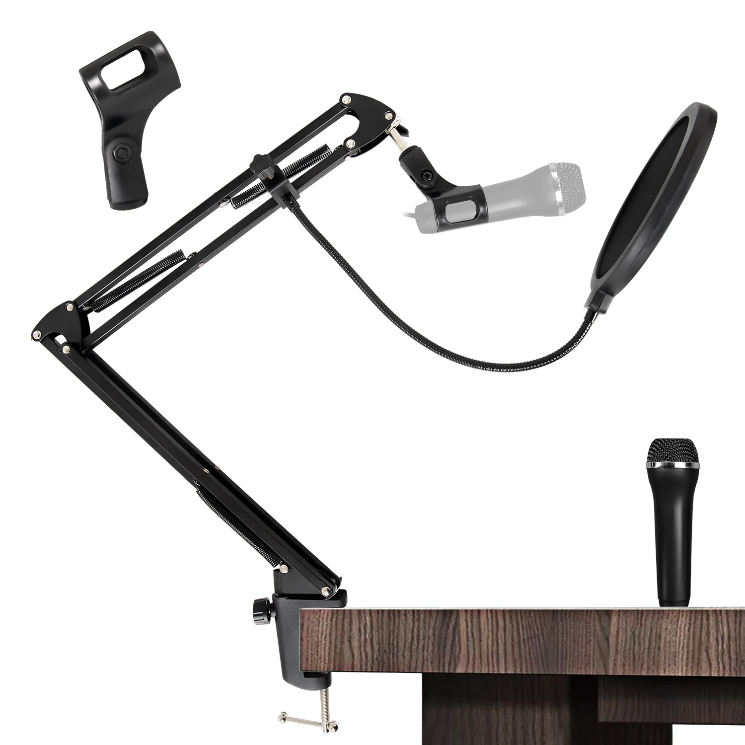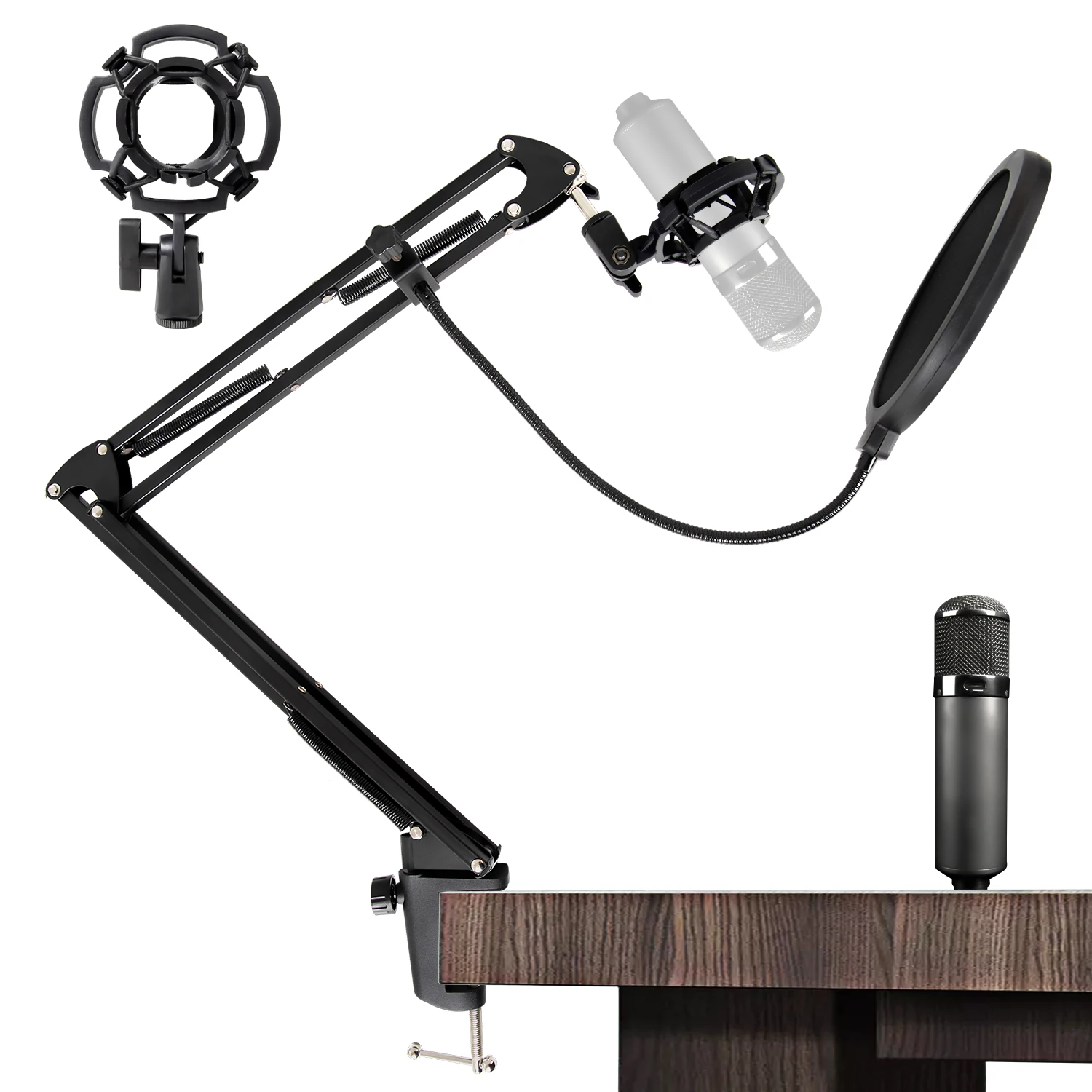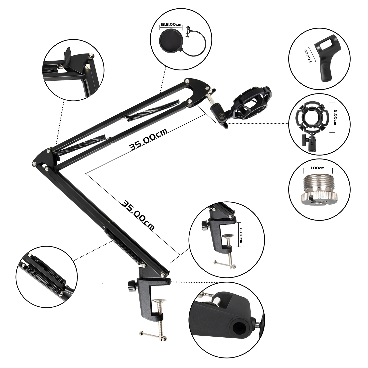 Подставка для микрофона для Blue Yeti и Blue Yeti Pro с микрофоном, ветровым стеклом и двухслойным экранным поп-фильтром, сверхмощный стрелы, Ножничные подставки для и записи (Примечание: микрофон на картинке не входит в комплект)