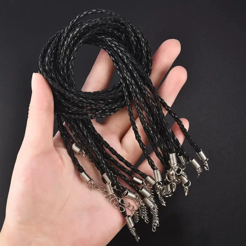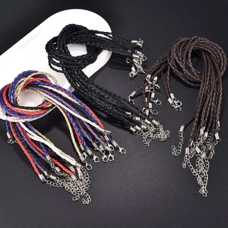 10 шт./Лот 3 мм плетеная веревка восковая веревка кожаный шнур ожерелье застежка-Омар восковой шнур цепь DIY ожерелья кулон ювелирные изделия фурнитура