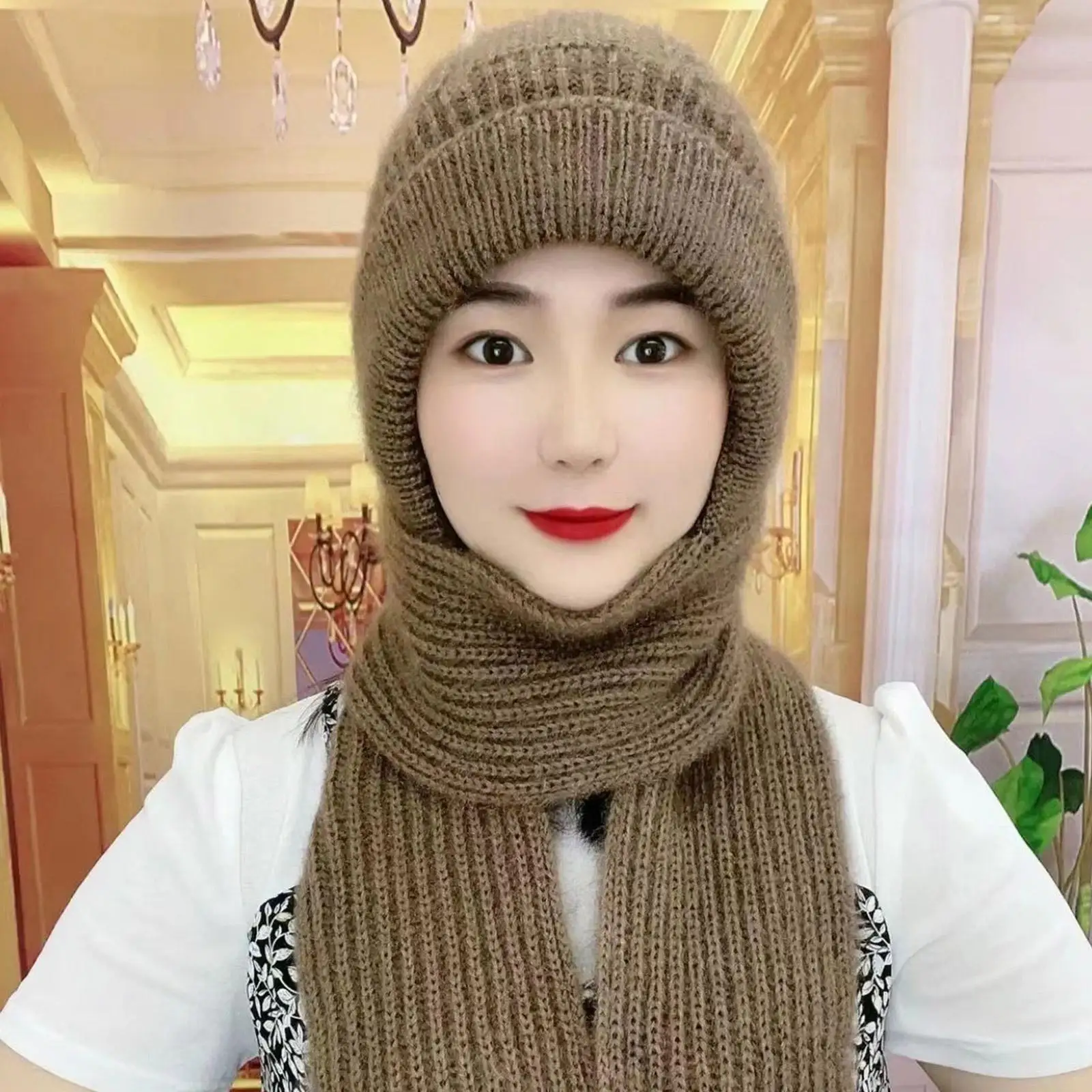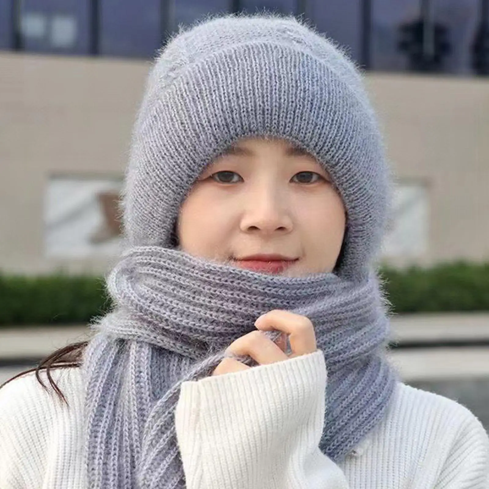 Шляпа, шарф и перчатки в одном, одна сторона шарфа длиннее, чем другая, поэтому его можно обернуть вокруг шеи