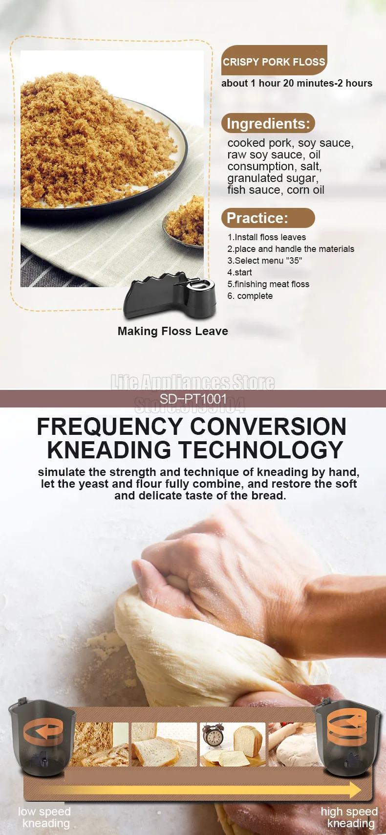 ●Household multi-function bread machine, can make bread, meat floss, whole wheat bread, quick bread,