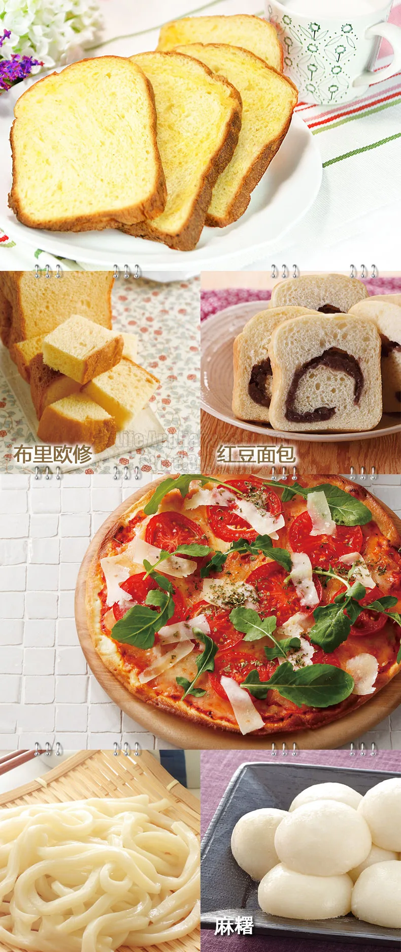 Red bean bread, natural yeast bread, pizza wood balls, toast, spaghetti dough, cakes, chocolate desserts, jams, etc. 35 menus to meet your various needs;